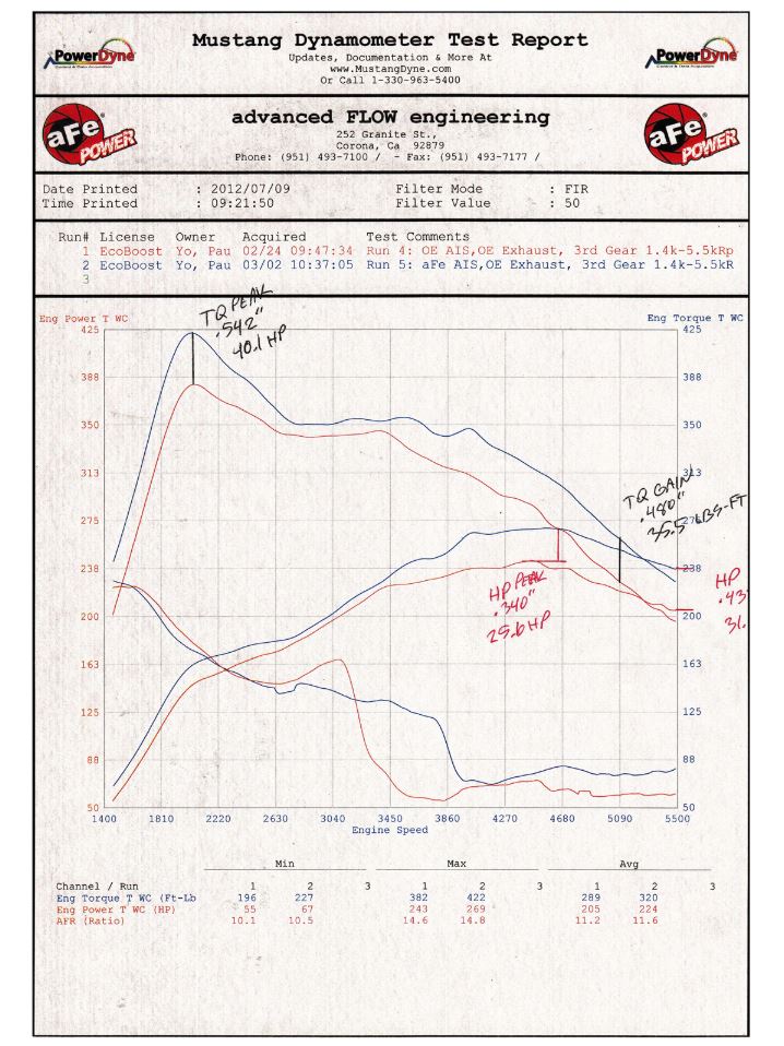 Unmatched Results! This kit installs easily and uses the bottom half of the factory airbox. aFe designed this kit to have equal length intake tubes and an H-pipe to evenly distribute airflow and increase performance. Heat shielding prevents this intake from drawing in hot air from the engine bay. Instead, it draws in cooler and denser air from outside to give your car more power! Dyno-Proven gains of 32hp and 35lbs. x ft. TQ.