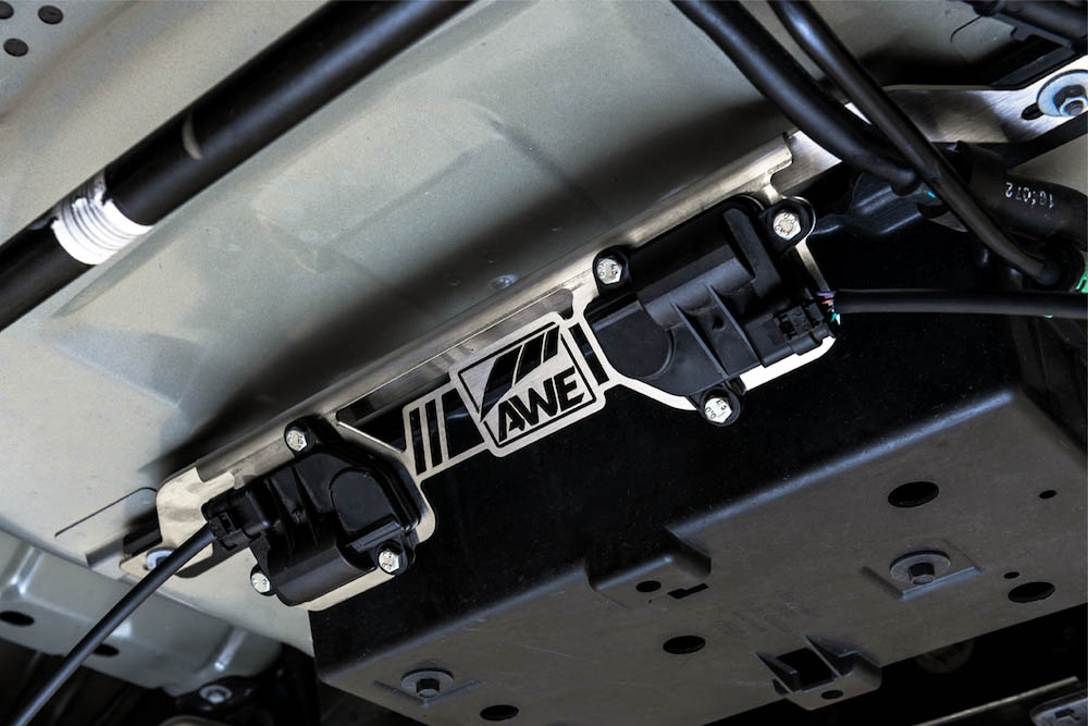 fitment. The AWE logo is visible whenever your car is on a lift or on stands to let people know your Mustang is not