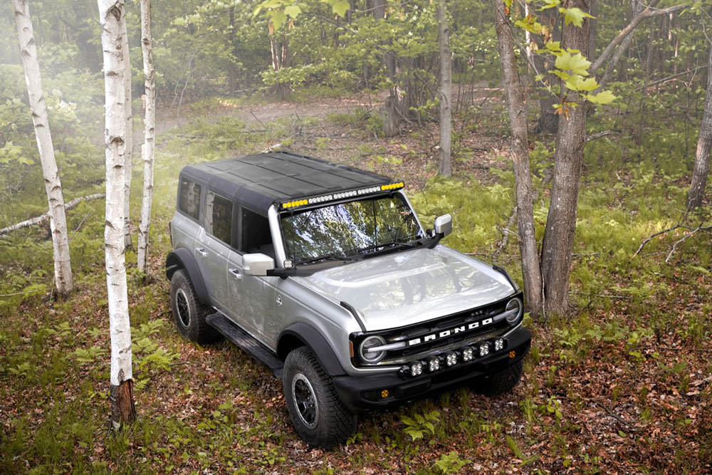 Trophy truck style. The roof-mounted light bar gives your Bronco styling like the ones driven in King of the Hammers or the Baja 1000. If you want that impressive race-inspired styling and better visibility off-road, pick up this light bar for your Bronco.