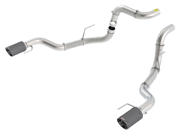 This Tailpipe assembly features carbon fiber tips and fits either the 60637 or 60638 mid-muffler assemblies or factory Raptor mufflers. Tip diameter is 4.5" and length 10" with Borla logo. Includes heat shields to protect factory spare tire and brake hoses from exhaust heat.