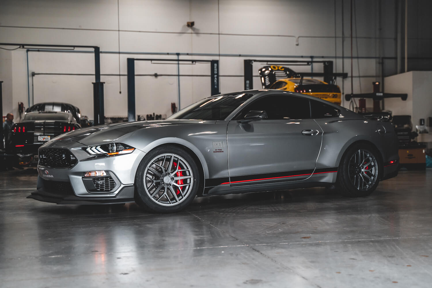 But, you can't expect Dario to keep it stock, right?! He's chosen from very select parts in our catalog to tweak the dyanamics of how this Mach 1 handles both everyday conditions and at the limit. Our Dual Rate Springs are tried and tested rigorously on our test vehicles in track conditions, and thanks to MagneRide, they're comfortable enough to run on the street as well. Check out the full build list of Dario's tastefully modified 2021 Mach 1!