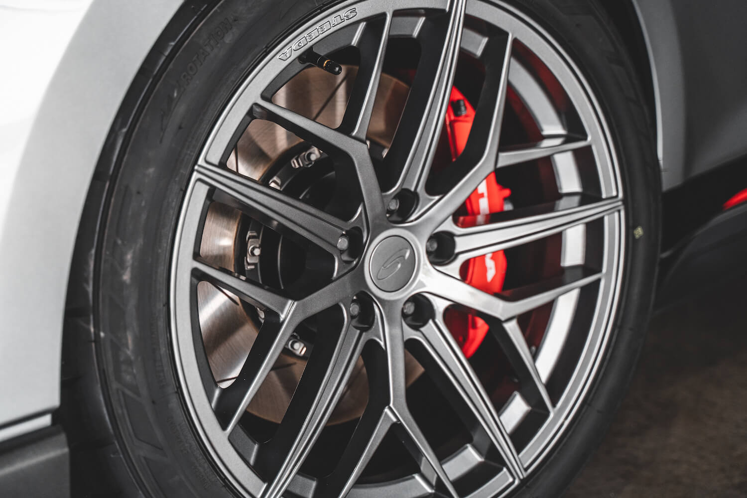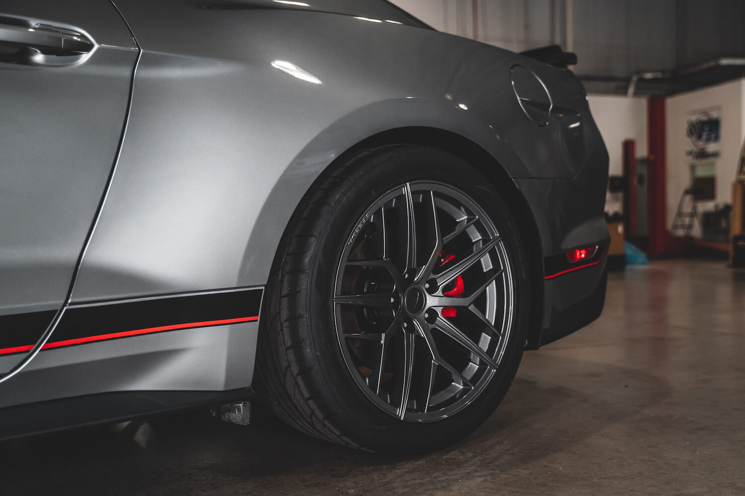 - Steeda Mustang Trident Gloss Titanium Square HPDE Wheel Package - 19x11 Square