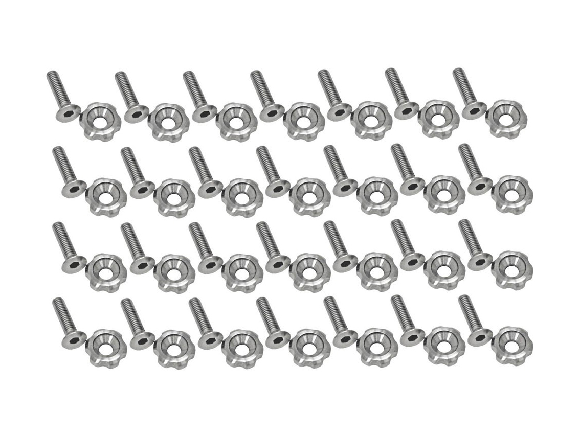 Your engine bay should look as good as the rest of your car! A really beautiful addition to any S197 Mustang, this set consists of 28 washers (styled to match our billet caps) and 28 matching bolts all with a satin finish to add the finishing touch under the hood.