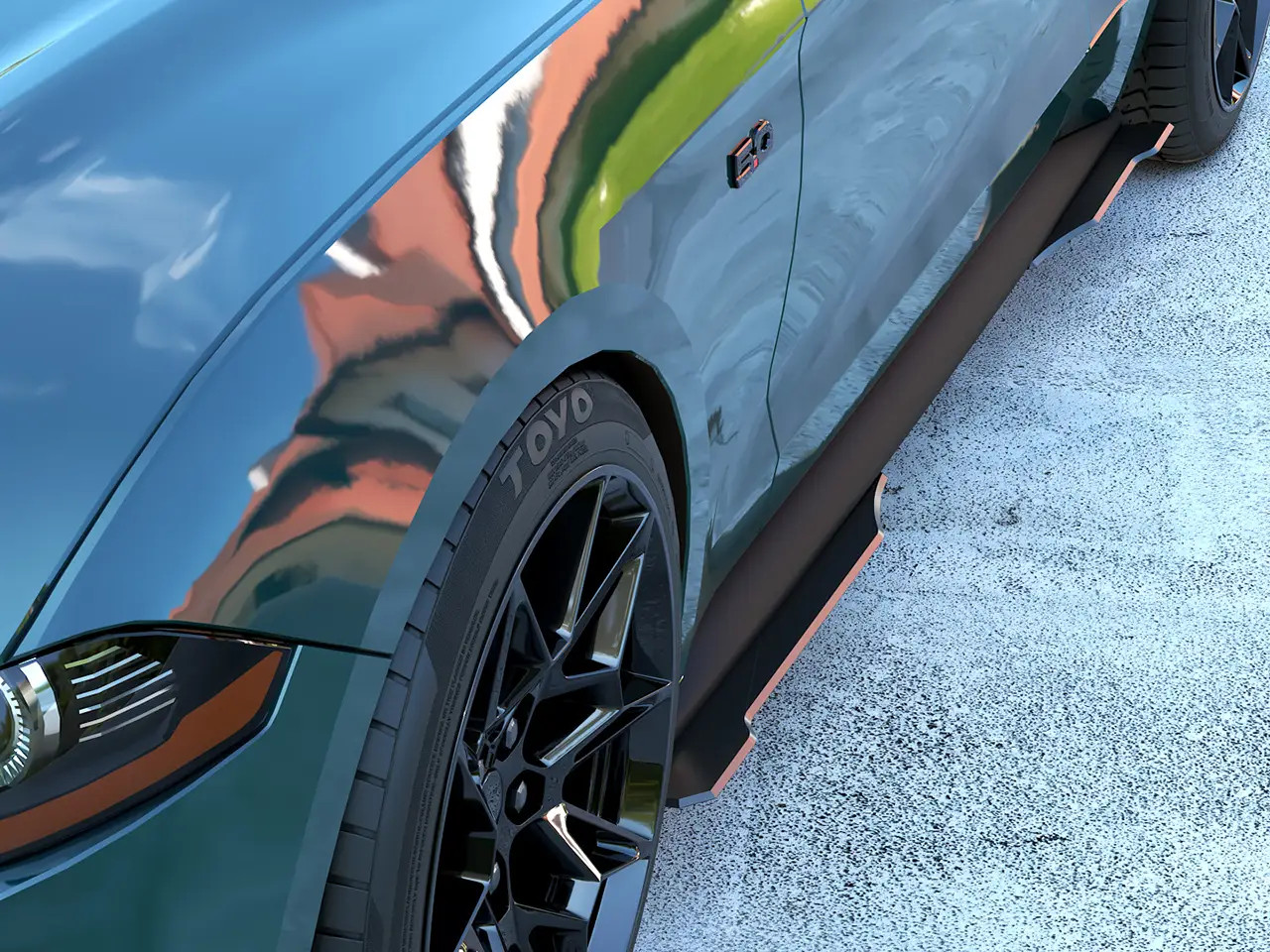Add aggressive definition to your 2015-2026 S550 or S650 Mustang with EMP's HDPE Side Skirts. These side skirts attach to the front and rear of your factory side extensions to add definition and enhance aerodynamics. Made from durable 1/4" HDPE, they're built to withstand extreme forces, and will never rust or corrode like steel alternatives. EMP ships these pieces with pre-drilled attachment holes and stainless steel hardware for easy installation, and they're slotted to let you choose how far they extend out from the vehicle. EMP manufactures these, along with their other aftermarket upgrades, right here in the USA.