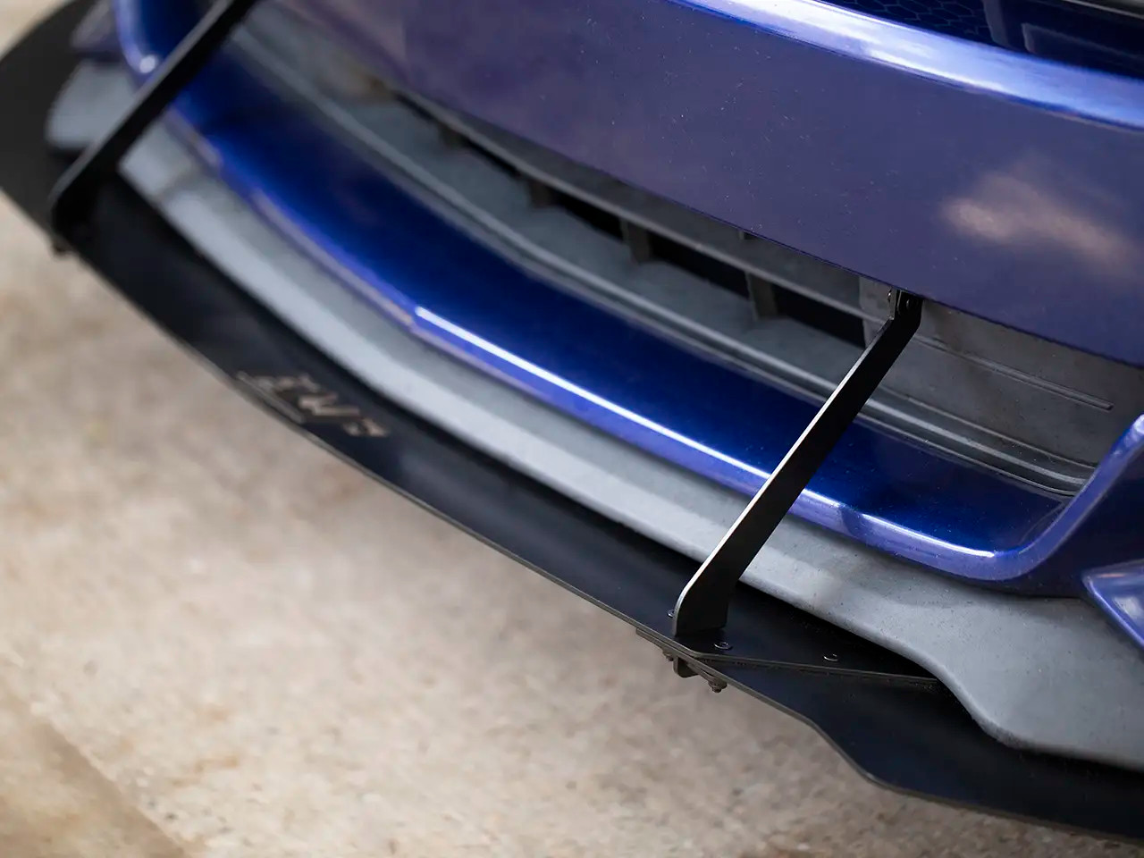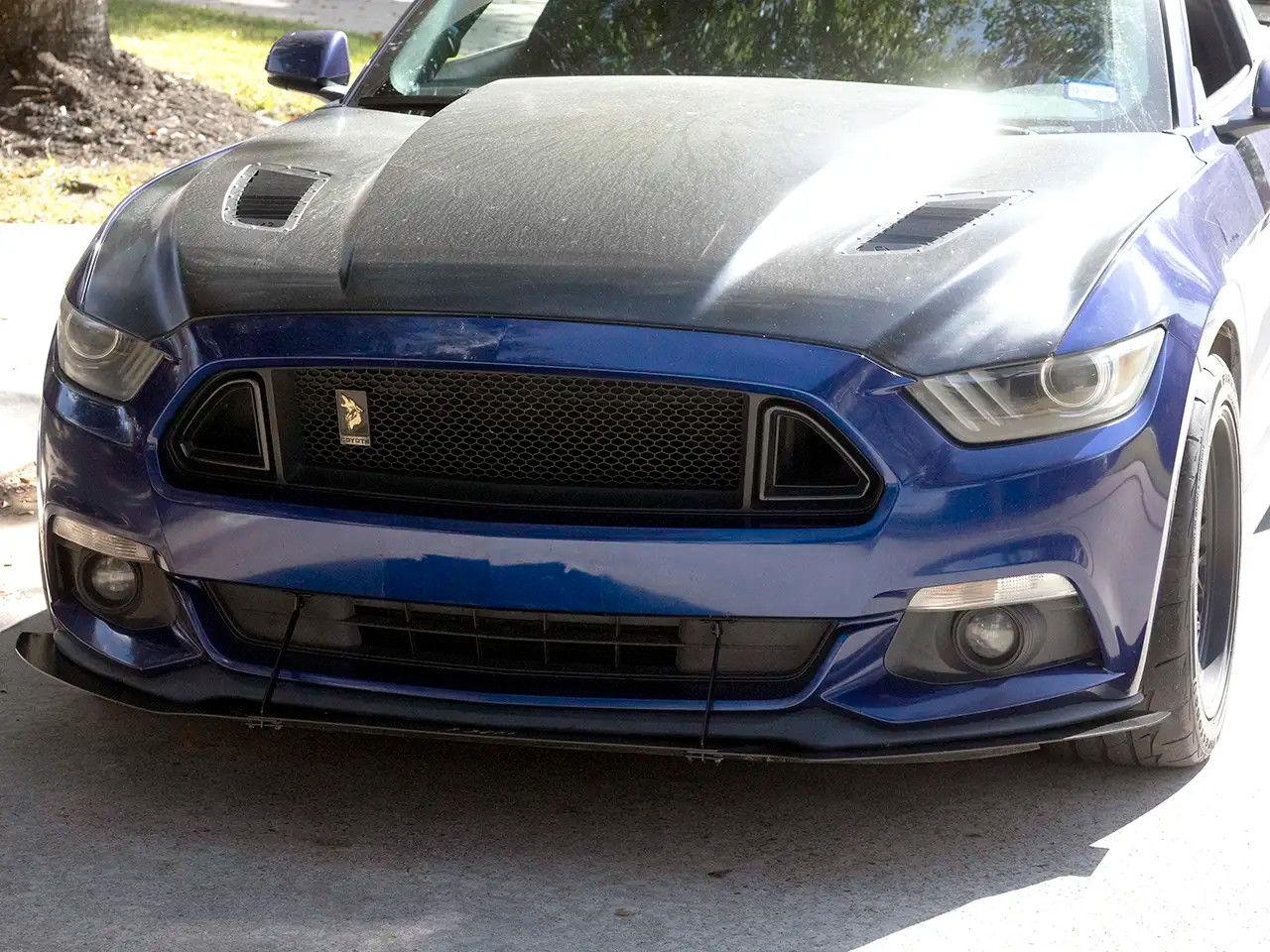 Get your 2015-2017 S550 Mustang track-ready with this Aluminum Front Air Splitter from EMP. This front splitter features an aggressive profile with beveled edges, support rods, and optional side winglets to transform your Mustang's front end with high performance styling. Its 3-piece design sets it apart from traditional wings, offering precise fitment, and adjustability in how far the front piece juts out. The included support rods add unmatched stability at high speeds, and feature integrated sacrificial scrape protection extensions on the bottom to protect the splitter itself. Made from high quality 1/8" aluminum, this splitter will never rust or corrode, meaning its powder coated black finish will last a lifetime. Installation is super simple with the included stainless steel hardware, and requires no disassembly of your factory front end. EMP offers this style splitter for all S550/S650 Mustangs, and its also available with an HDPE construction for a more cost-effective solution.