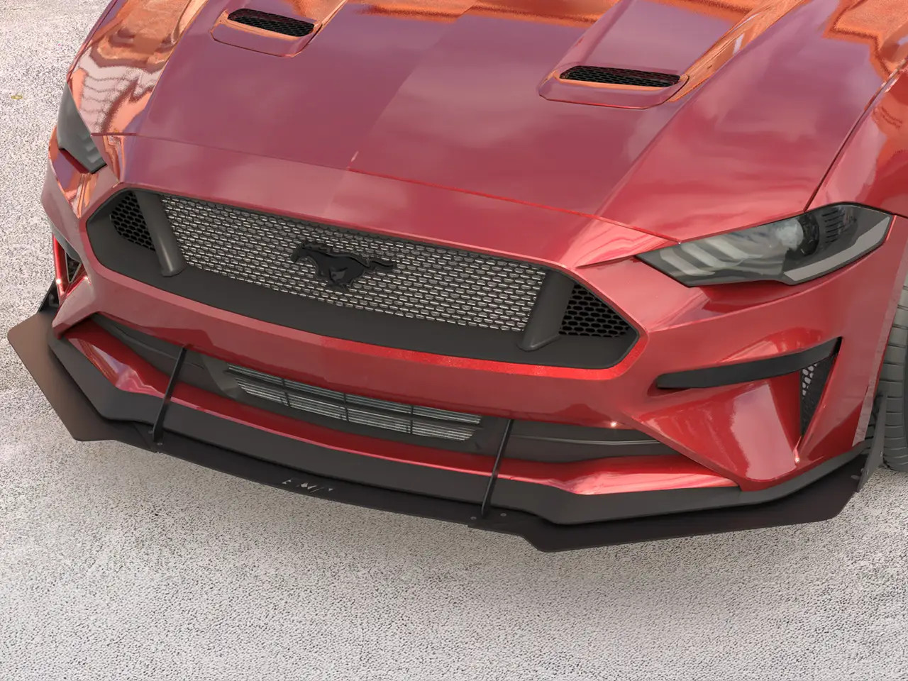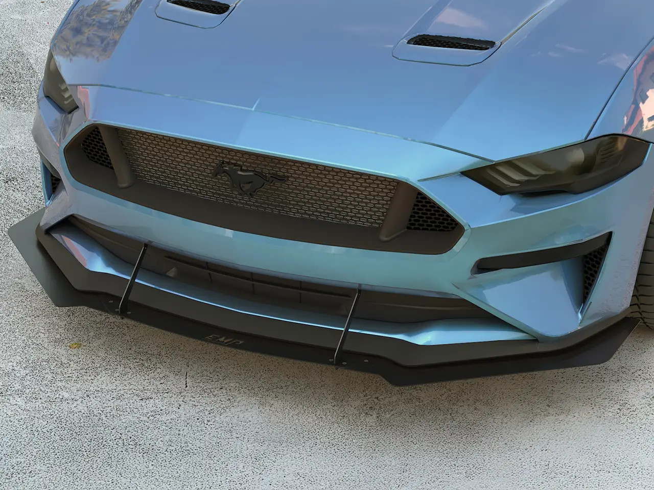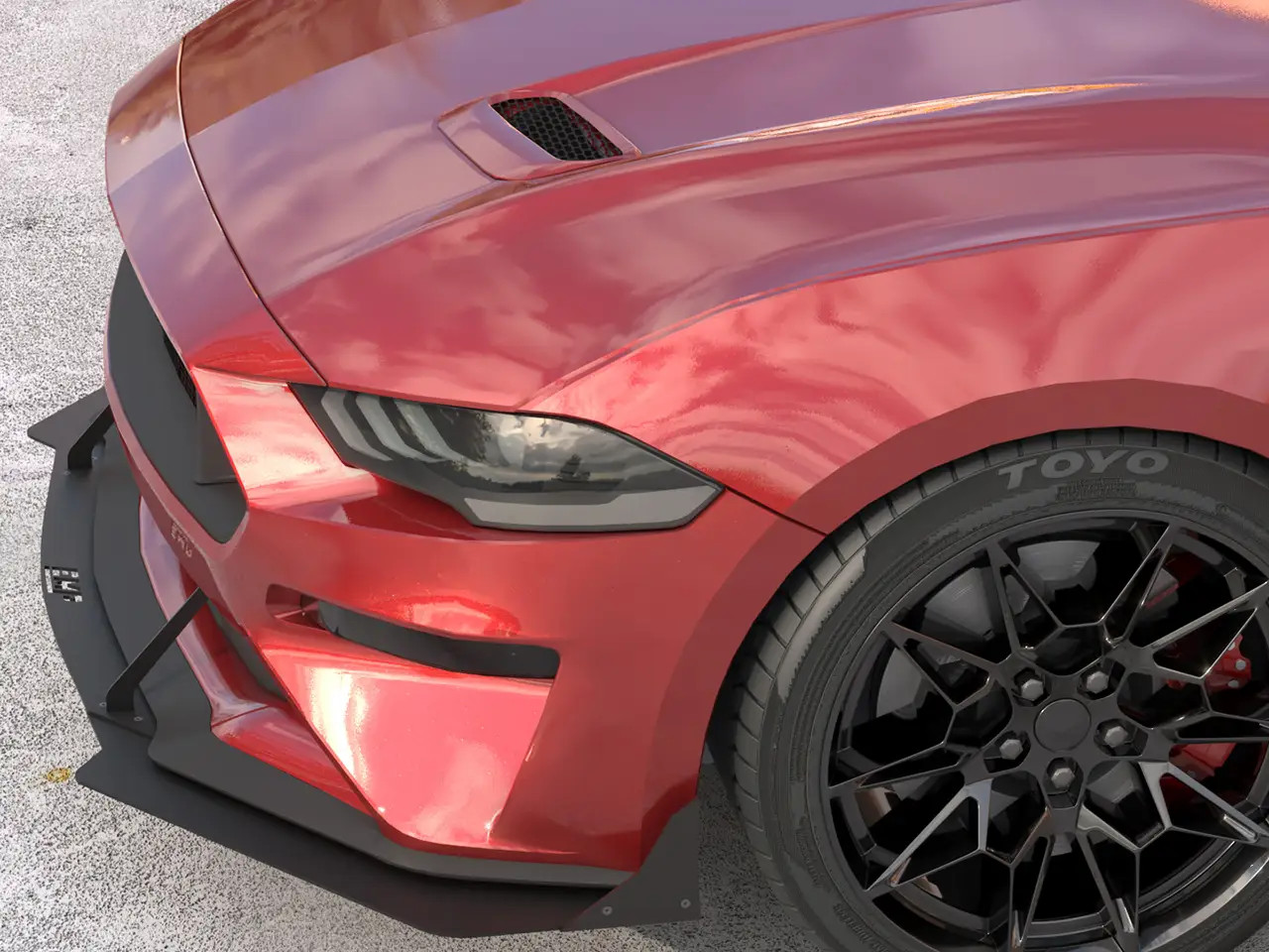 Get your 2018-2023 S550 Mustang track-ready with this Aluminum Front Air Splitter from EMP. This front splitter features an aggressive profile with beveled edges, support rods, and optional side winglets to transform your Mustang's front end with high performance styling. Its 3-piece design sets it apart from traditional wings, offering precise fitment, and adjustability in how far the front piece juts out. The included support rods add unmatched stability at high speeds, and feature integrated sacrificial scrape protection extensions on the bottom to protect the splitter itself. Made from high quality 1/8" aluminum, this splitter will never rust or corrode, meaning its powder coated black finish will last a lifetime. Installation is super simple with the included stainless steel hardware, and requires no disassembly of your factory front end. EMP offers this style splitter for all S550/S650 Mustangs, and its also available with an HDPE construction for a more cost-effective solution.