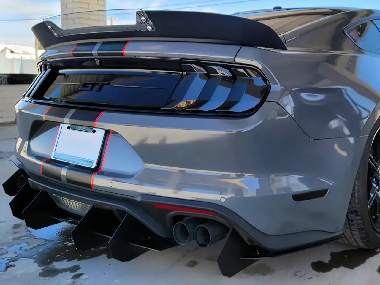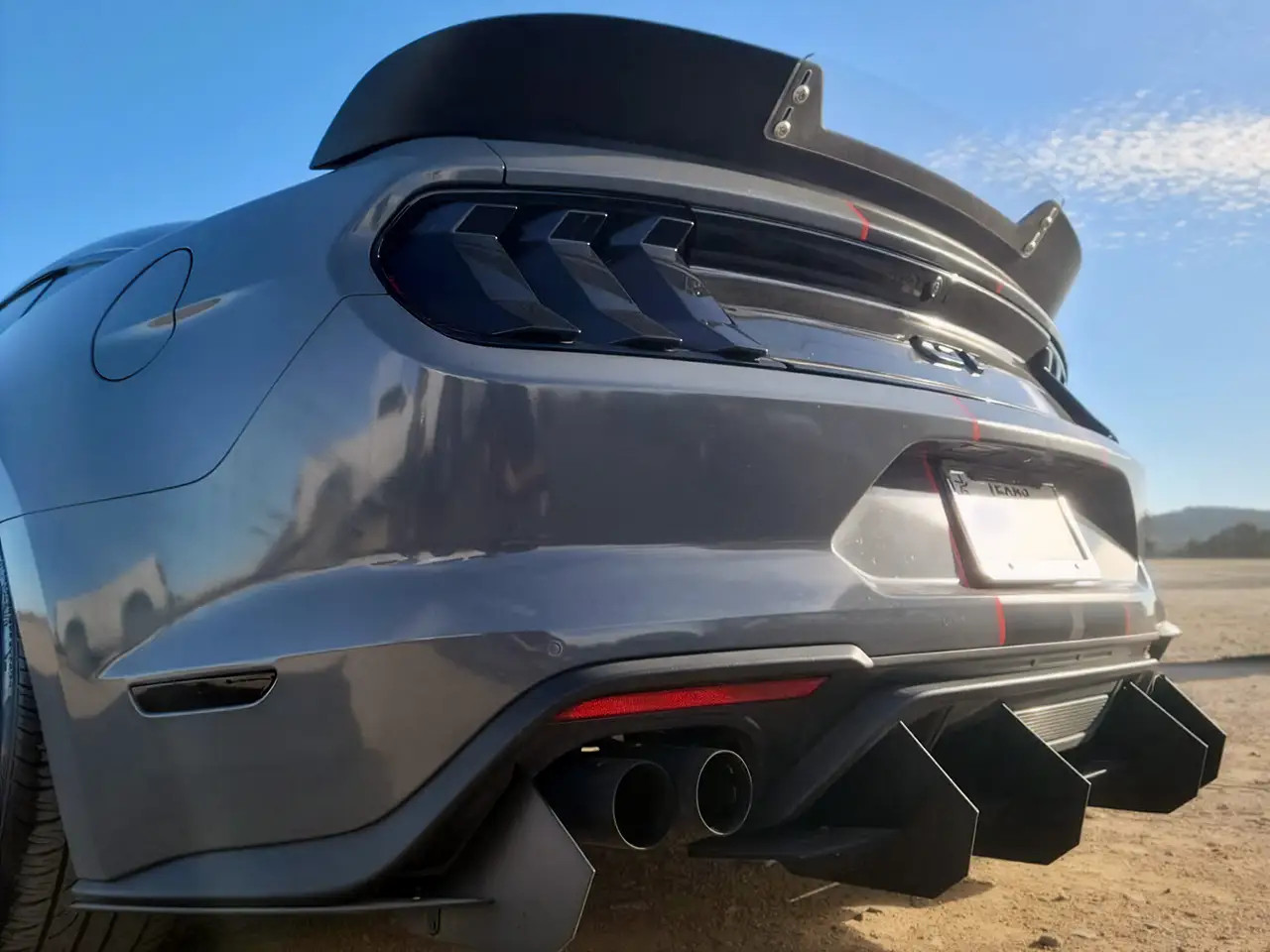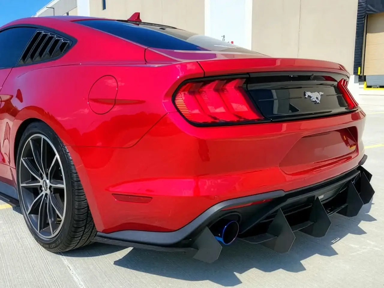 Enhance the form and function of your 2015-2023 S550 Mustang GT or EcoBoost's rear end with EMP's V1 Aluminum Rear Diffuser. This rear diffuser features a menacing profile with large vertical aero fins that will make your Mustang stand out from the crowd. Not only does this piece look the part, but EMP spared no expense ensuring its fit and finish is top-notch. Unlike other solutions on the market, this one has pre-drilled mounting holes for a super simple install. It also features a slotted attachment design to help you get the center section perfectly aligned, and this allows you to adjust how far the diffuser extends back past your rear bumper. To further solidify the strength of this rear diffuser, it was taken on a test lap at the Daytona 500 where it survived a blistering 155mph with ease. EMP provides all necessary stainless steel hardware for installation, and manufactures this kit right here in the USA.