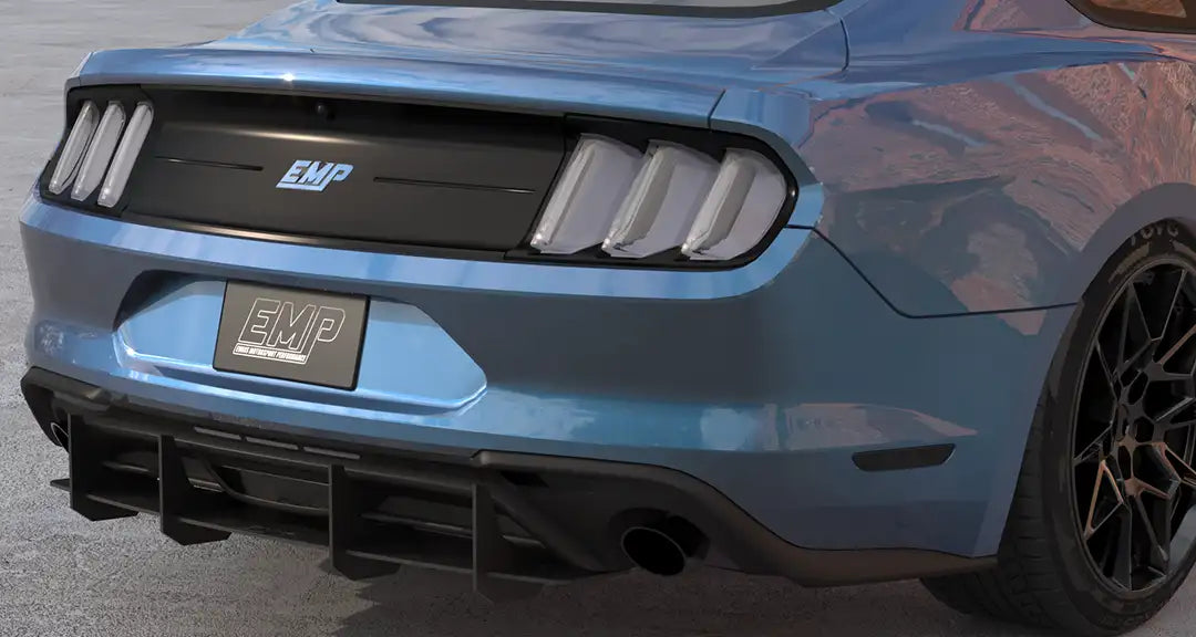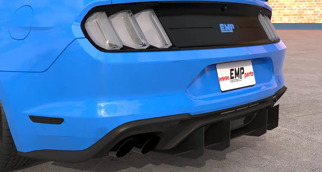 Enhance the form and function of your 2015-2023 S550 Mustang GT or EcoBoost's rear end with EMP's V2 HDPE Rear Diffuser. This rear diffuser features a menacing profile with large vertical aero fins that will make your Mustang stand out from the crowd. Not only does this piece look the part, but EMP spared no expense ensuring its fit and finish is top-notch. Unlike other solutions on the market, this one has pre-drilled mounting holes for a super simple install. It also features a slotted attachment design to help you get the center section perfectly aligned, and this allows you to adjust how far the diffuser extends back past your rear bumper. To further solidify the strength of this rear diffuser, it was taken on a test lap at the Daytona 500 where it survived a blistering 155mph with ease. EMP provides all necessary stainless steel hardware for installation, and manufactures this kit right here in the USA.