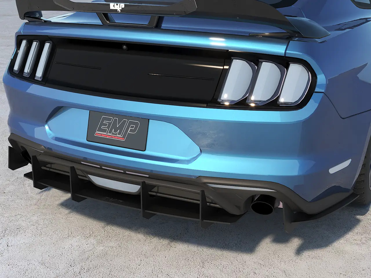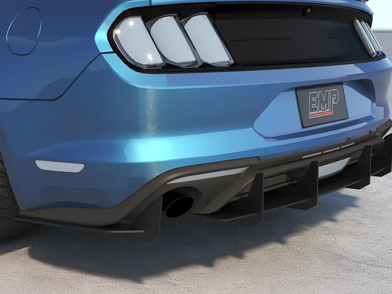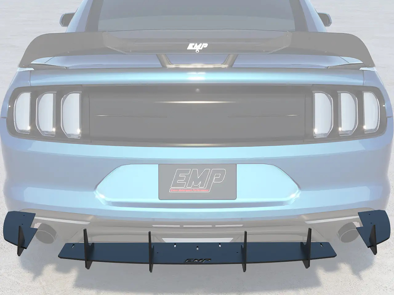 Enhance the form and function of your 2015-2023 S550 Mustang GT or EcoBoost's rear end with EMP's V2 HDPE Rear Diffuser. This rear diffuser features a menacing profile with large vertical aero fins that will make your Mustang stand out from the crowd. Not only does this piece look the part, but EMP spared no expense ensuring its fit and finish is top-notch. Unlike other solutions on the market, this one has pre-drilled mounting holes for a super simple install. It also features a slotted attachment design to help you get the center section perfectly aligned, and this allows you to adjust how far the diffuser extends back past your rear bumper. To further solidify the strength of this rear diffuser, it was taken on a test lap at the Daytona 500 where it survived a blistering 155mph with ease. EMP provides all necessary stainless steel hardware for installation, and manufactures this kit right here in the USA.