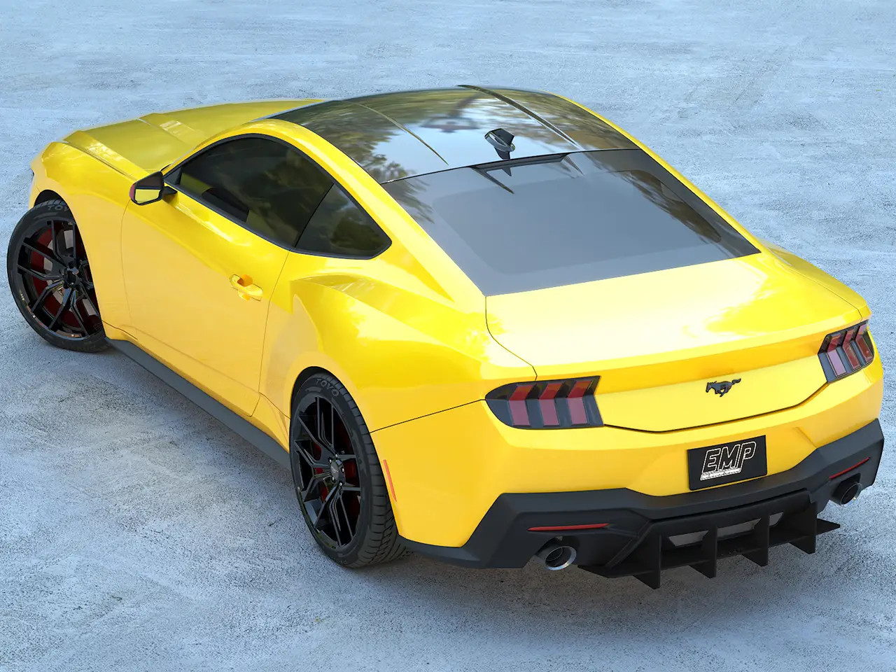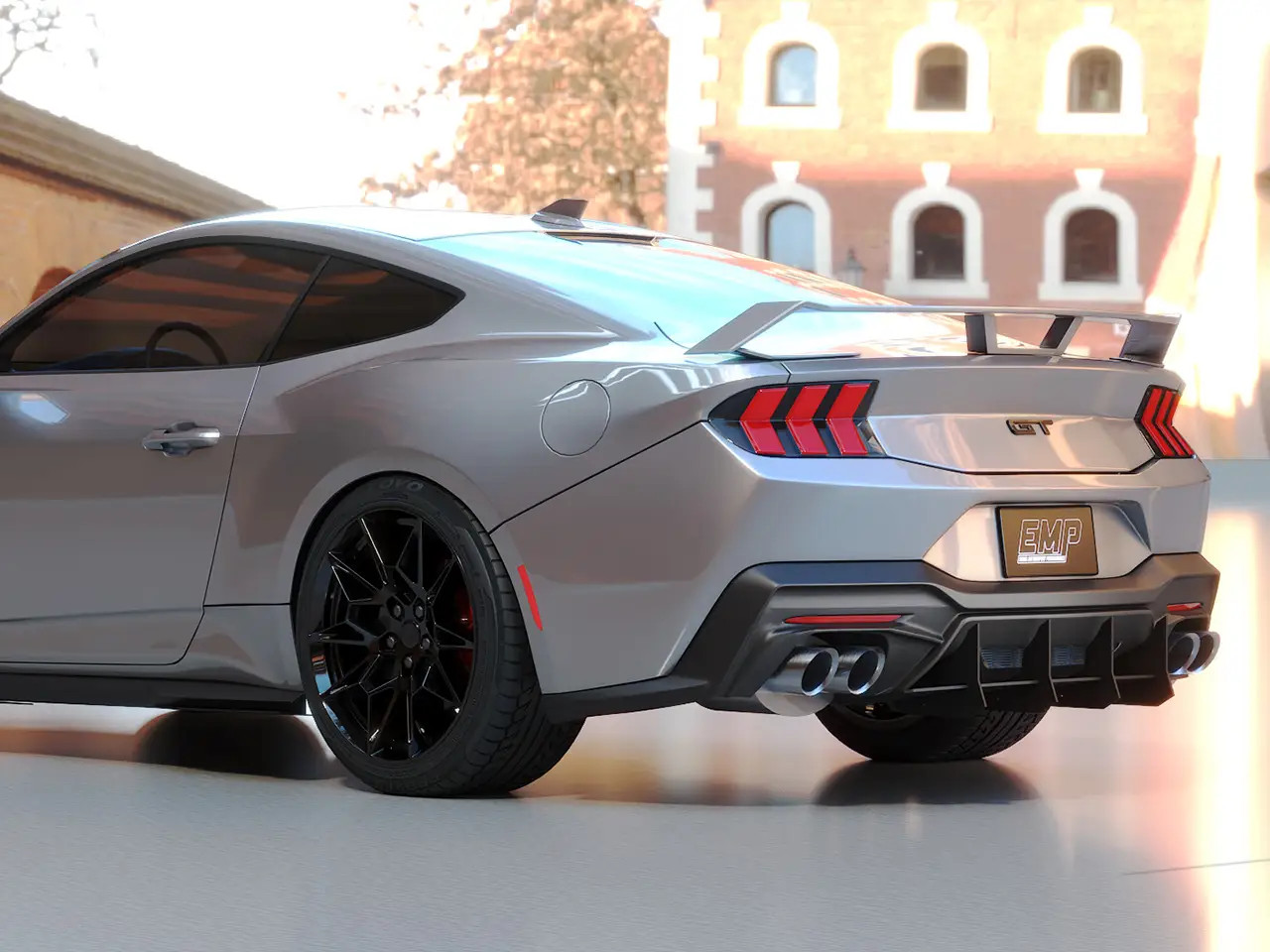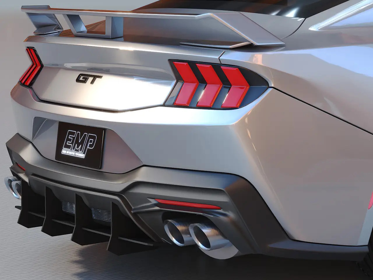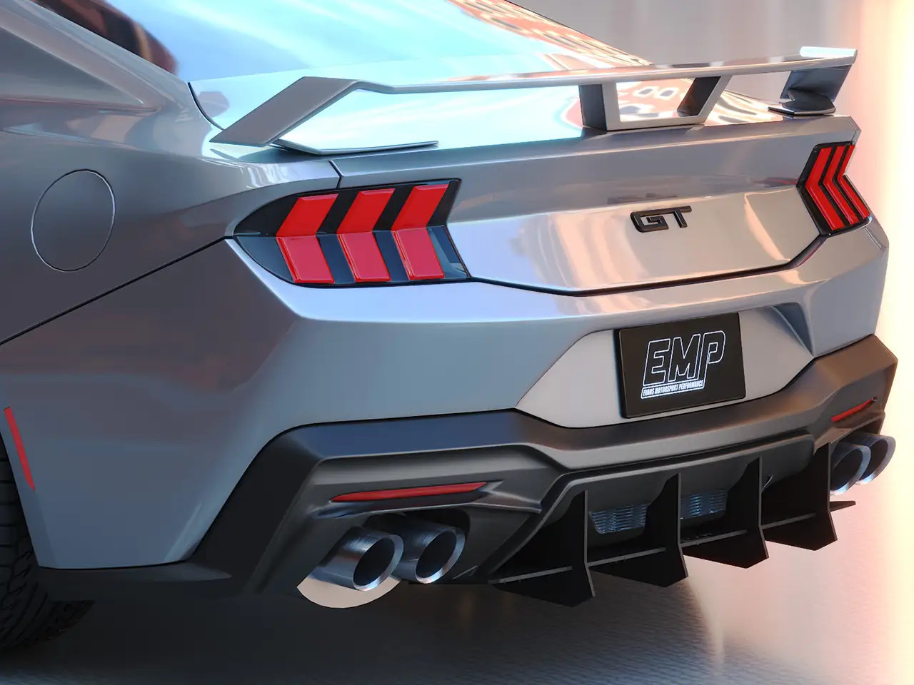 Enhance the form and function of your 2024-2026 S650 Mustang GT or EcoBoost's rear end with EMP's HDPE Rear Diffuser. This rear diffuser features a menacing profile with large vertical aero fins that will make your Mustang stand out from the crowd. Not only does this piece look the part, but EMP spared no expense ensuring its fit and finish is top-notch. Unlike other solutions on the market, this one has pre-drilled mounting holes for a super simple install. It also features a slotted attachment design to help you get the center section perfectly aligned, and this allows you to adjust how far the diffuser extends back past your rear bumper. To further solidify the strength of this rear diffuser, it was taken on a test lap at the Daytona 500 where it survived a blistering 155mph with ease. EMP provides all necessary stainless steel hardware for installation, and manufactures this kit right here in the USA.