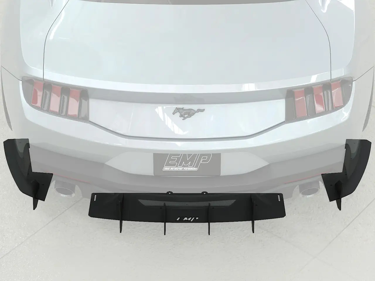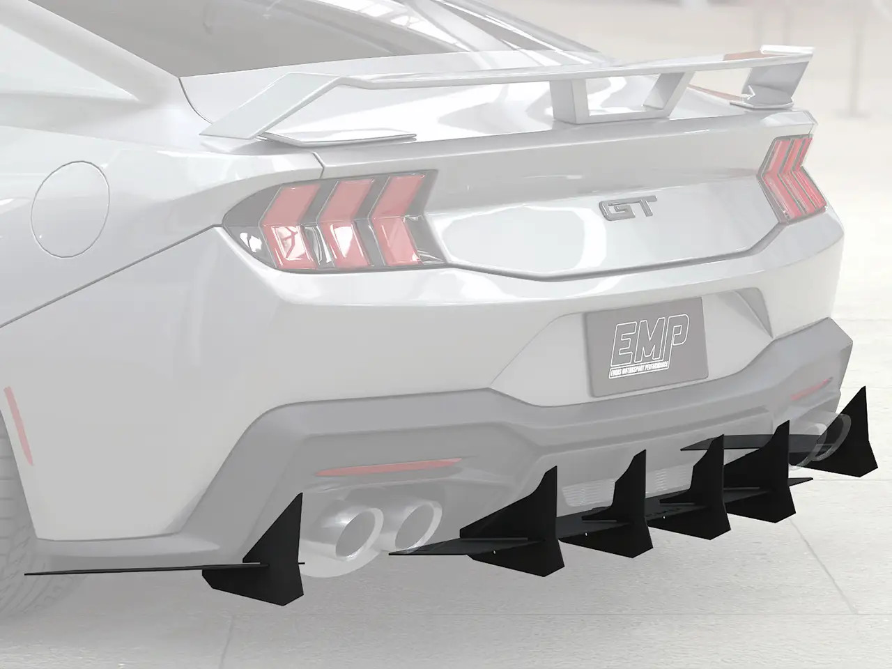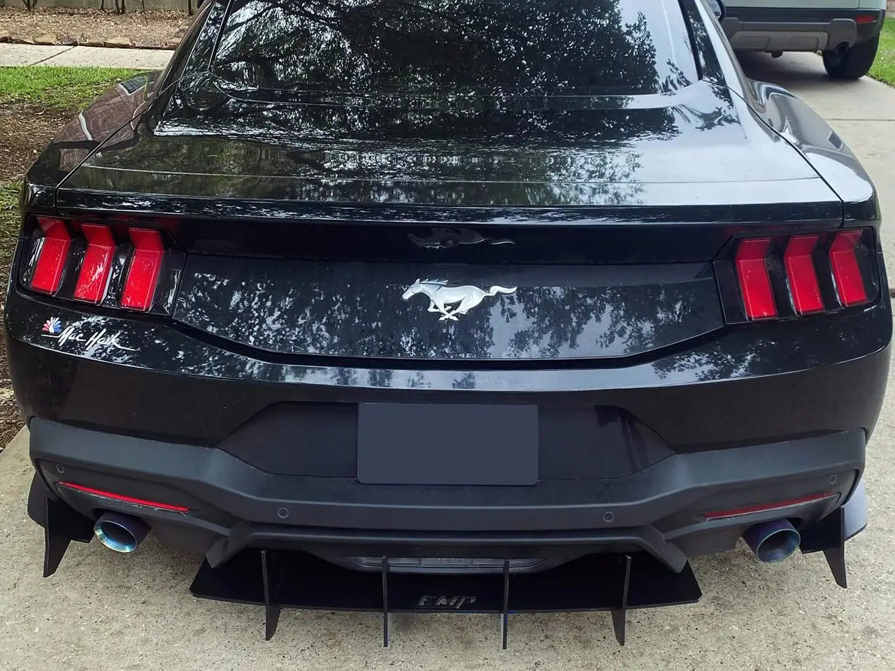 Enhance the form and function of your 2024-2026 S650 Mustang GT or EcoBoost's rear end with EMP's V3 HDPE Rear Diffuser. This rear diffuser features a menacing profile with large vertical aero fins that will make your Mustang stand out from the crowd. Not only does this piece look the part, but EMP spared no expense ensuring its fit and finish is top-notch. Unlike other solutions on the market, this one has pre-drilled mounting holes for a super simple install. It also features a slotted attachment design to help you get the center section perfectly aligned, and this allows you to adjust how far the diffuser extends back past your rear bumper. To further solidify the strength of this rear diffuser, it was taken on a test lap at the Daytona 500 where it survived a blistering 155mph with ease. EMP provides all necessary stainless steel hardware for installation, and manufactures this kit right here in the USA.