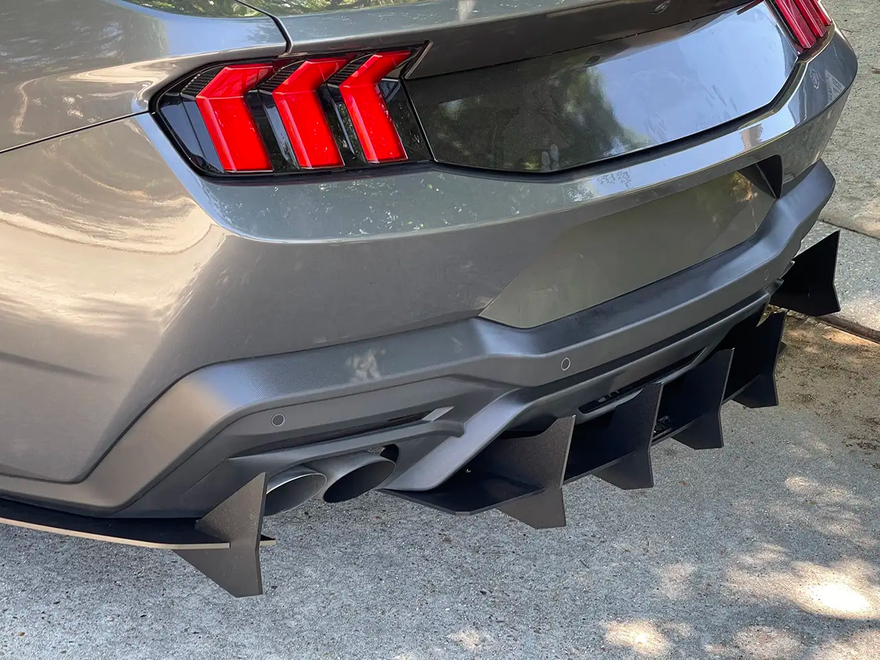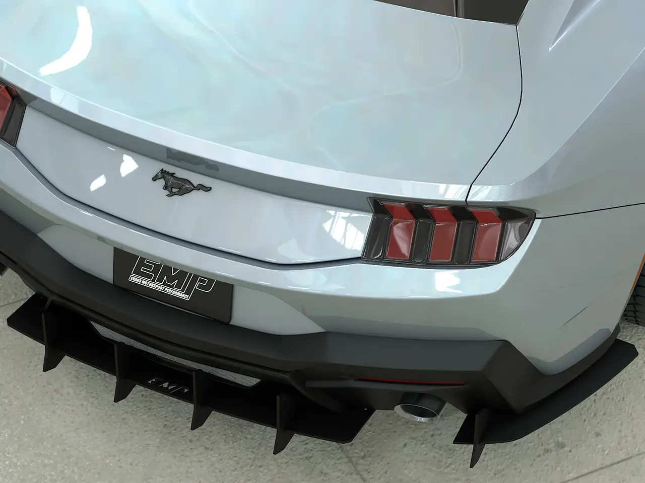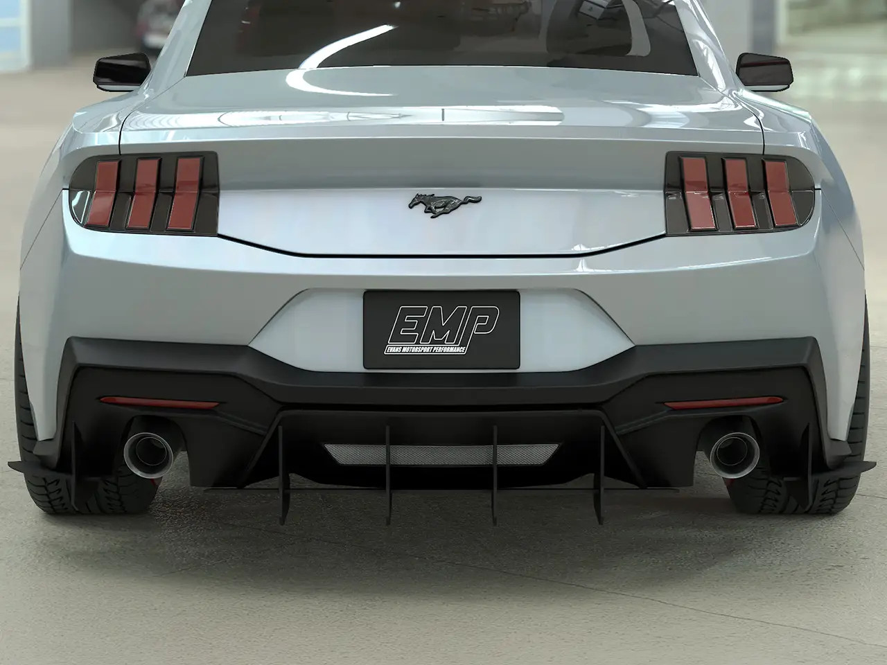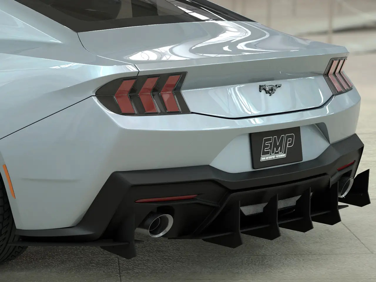 Enhance the form and function of your 2024-2026 S650 Mustang GT or EcoBoost's rear end with EMP's V3 HDPE Rear Diffuser. This rear diffuser features a menacing profile with large vertical aero fins that will make your Mustang stand out from the crowd. Not only does this piece look the part, but EMP spared no expense ensuring its fit and finish is top-notch. Unlike other solutions on the market, this one has pre-drilled mounting holes for a super simple install. It also features a slotted attachment design to help you get the center section perfectly aligned, and this allows you to adjust how far the diffuser extends back past your rear bumper. To further solidify the strength of this rear diffuser, it was taken on a test lap at the Daytona 500 where it survived a blistering 155mph with ease. EMP provides all necessary stainless steel hardware for installation, and manufactures this kit right here in the USA.