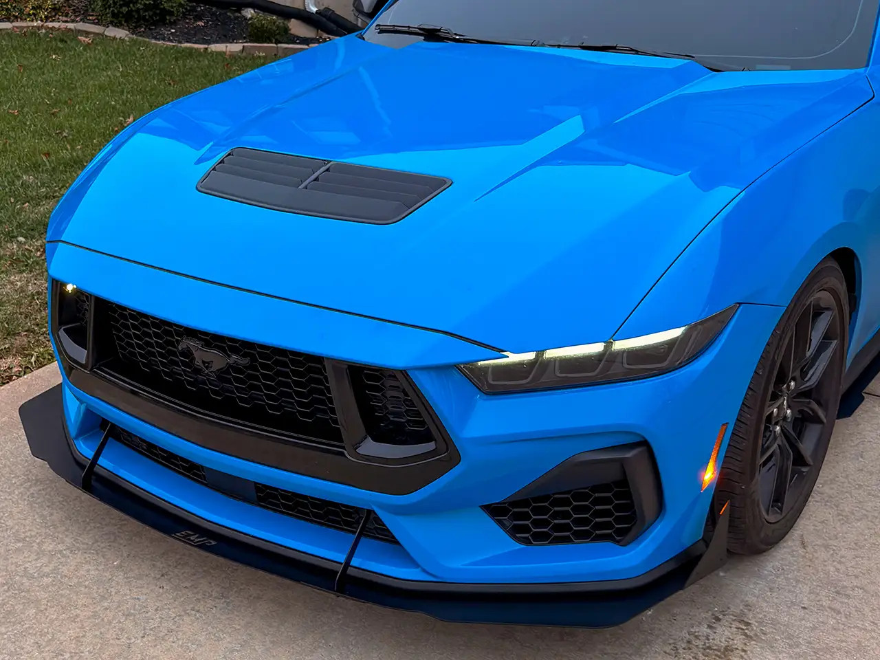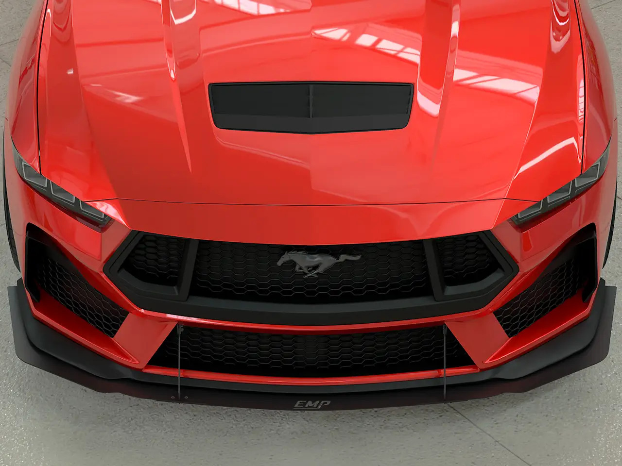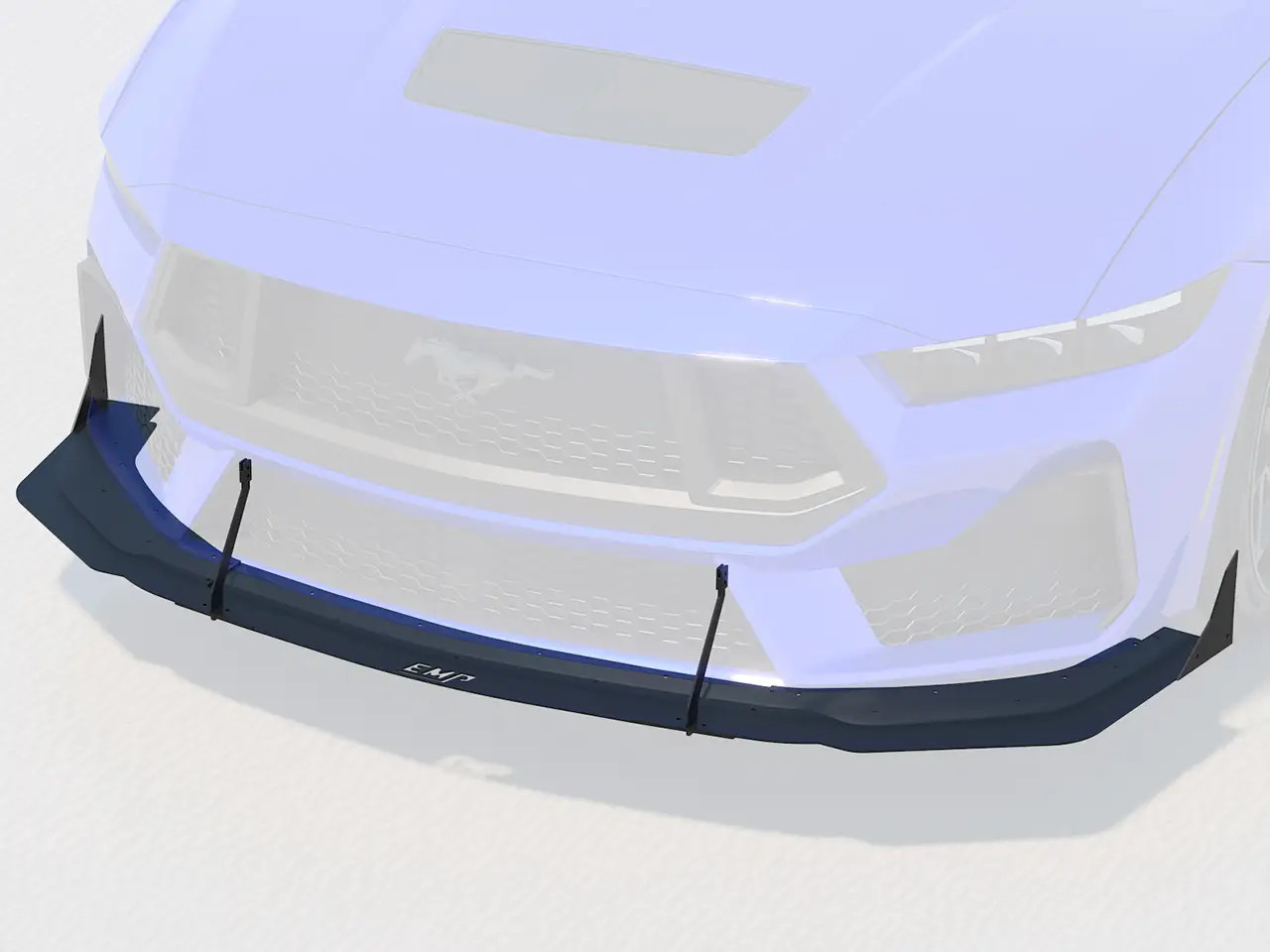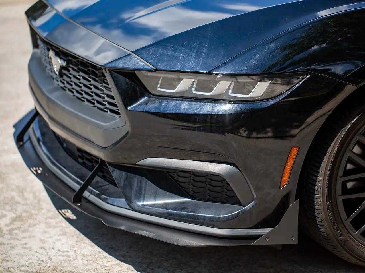 Get your 2024-2026 S650 Mustang track-ready with this Aluminum Front Air Splitter from EMP. This front splitter features an aggressive profile with beveled edges, support rods, and optional side winglets to transform your Mustang's front end with high performance styling. Its 3-piece design sets it apart from traditional wings, offering precise fitment, and adjustability in how far the front piece juts out. The included support rods add unmatched stability at high speeds, and feature integrated sacrificial scrape protection extensions on the bottom to protect the splitter itself. Made from high quality 1/8" aluminum, this splitter will never rust or corrode, meaning its powder coated black finish will last a lifetime. Installation is super simple with the included stainless steel hardware, and requires no disassembly of your factory front end. EMP offers this style splitter for all S550/S650 Mustangs, and its also available with an HDPE construction for a more cost-effective solution.