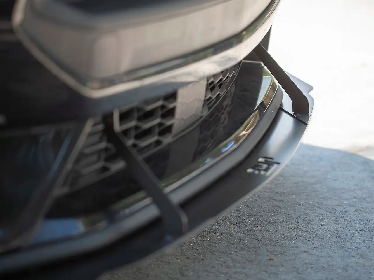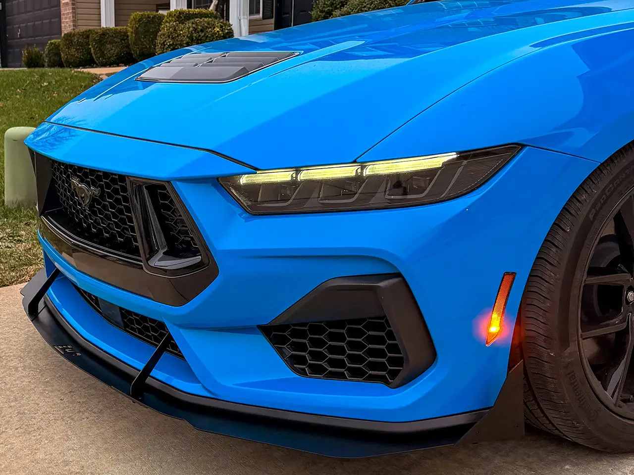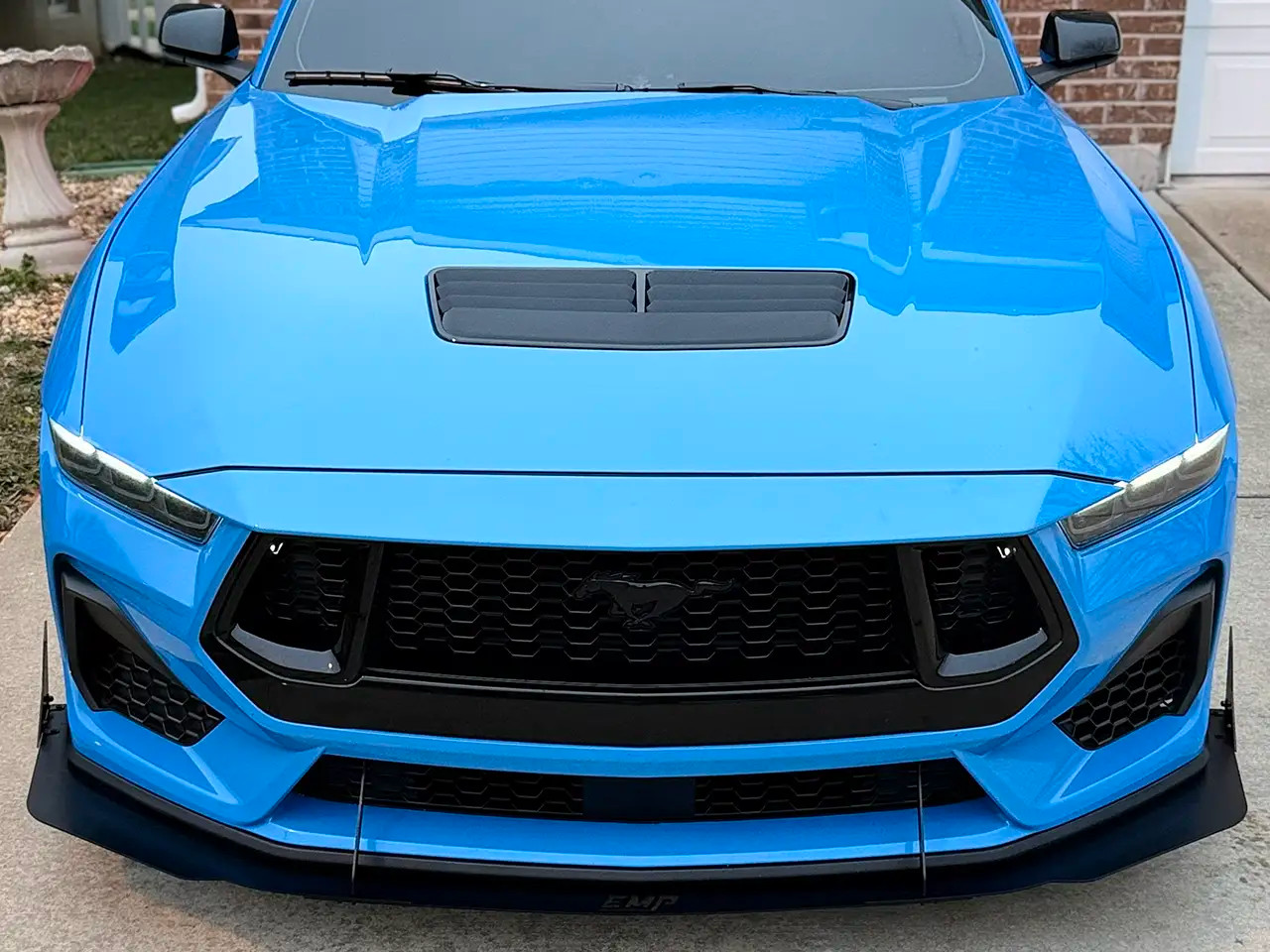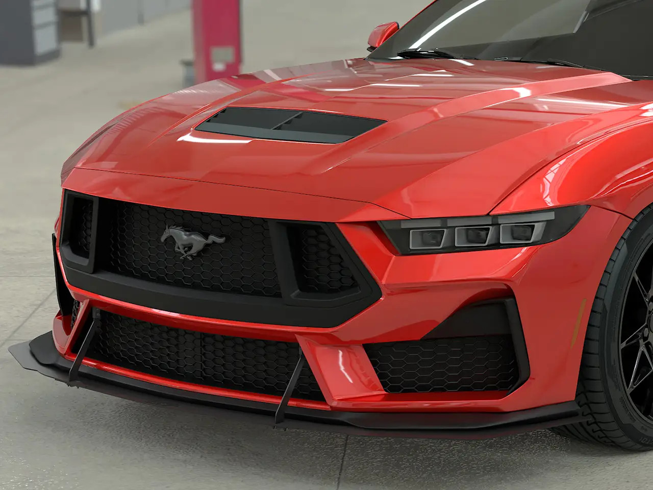 Get your 2024-2026 S650 Mustang track-ready with this Aluminum Front Air Splitter from EMP. This front splitter features an aggressive profile with beveled edges, support rods, and optional side winglets to transform your Mustang's front end with high performance styling. Its 3-piece design sets it apart from traditional wings, offering precise fitment, and adjustability in how far the front piece juts out. The included support rods add unmatched stability at high speeds, and feature integrated sacrificial scrape protection extensions on the bottom to protect the splitter itself. Made from high quality 1/8" aluminum, this splitter will never rust or corrode, meaning its powder coated black finish will last a lifetime. Installation is super simple with the included stainless steel hardware, and requires no disassembly of your factory front end. EMP offers this style splitter for all S550/S650 Mustangs, and its also available with an HDPE construction for a more cost-effective solution.