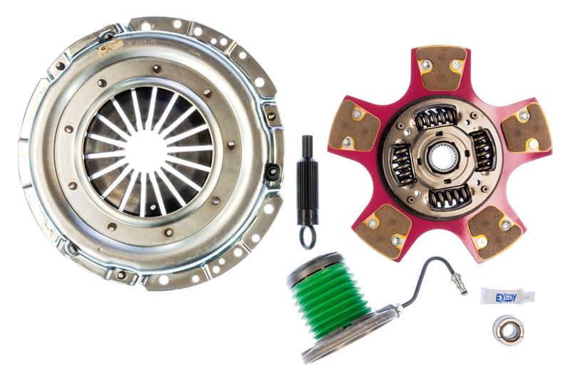Improved performance with cerametallic friction material and a stronger clutch cover. The stage 2 clutch kit uses a cushion button clutch disc with cerametallic friction material in order to withstand more heat, stress, and abuse that is needed with track performance or high power engines. The clutch cover features a 40% higher clamping force that gives the clutch higher torque capacity.