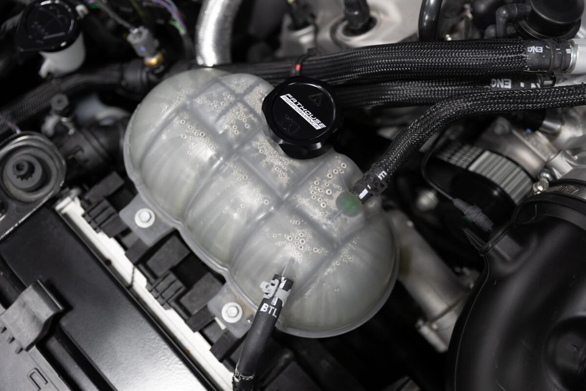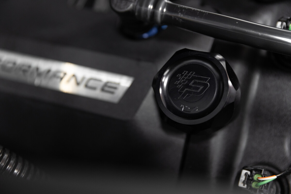Transform your 2018-2025 S550 or S650 Mustang GT's engine bay with this complete billet aluminum cap kit from Fathouse Performance! This kit includes high quality black anodized aluminum replacement caps for your Mustang's engine coolant reservoir, brake fluid reservoir, engine oil, AC lines, dipstick handle, and washer fluid reservoir to give your engine bay a picture perfect look.