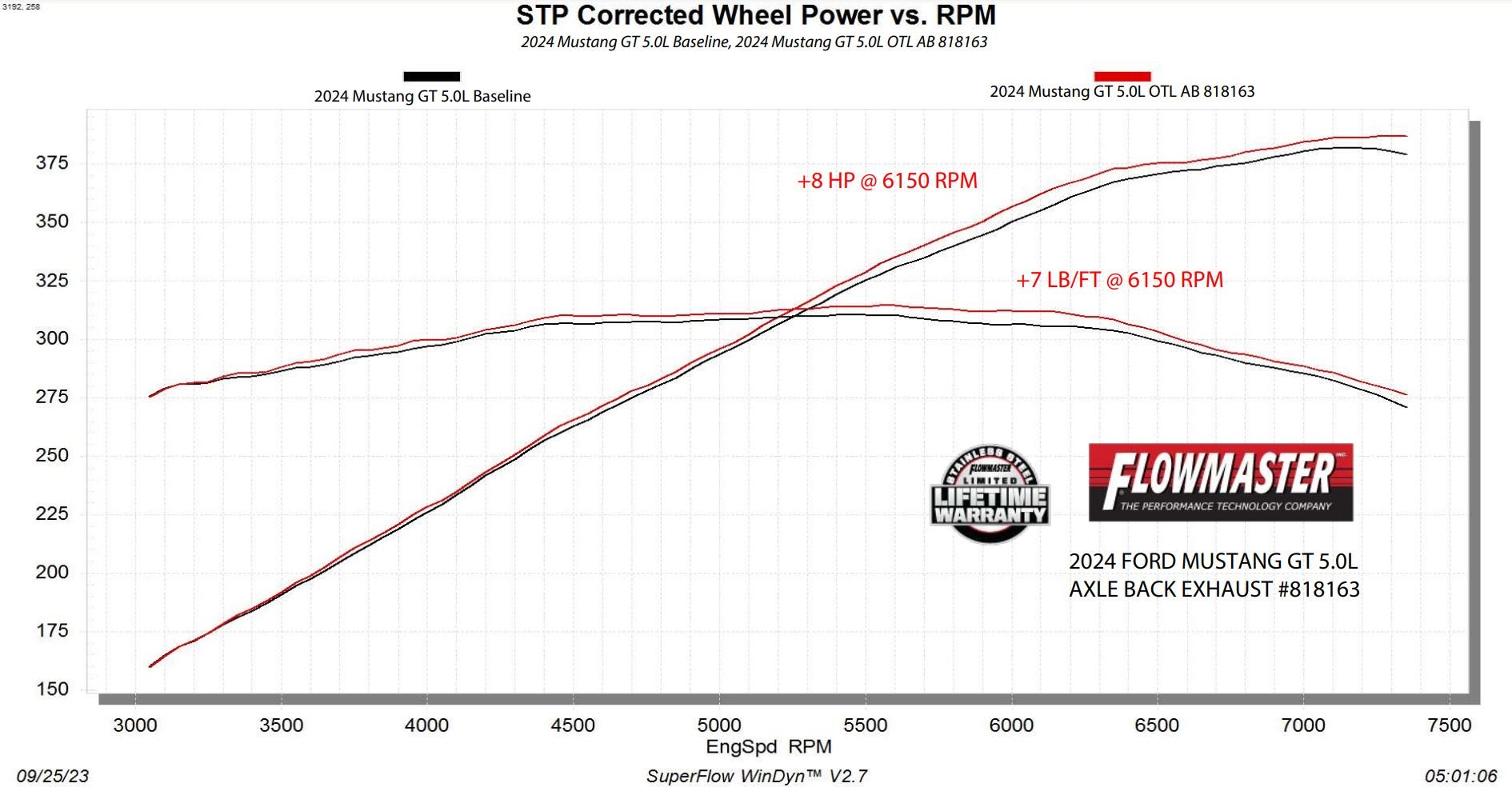 Better performance. This axle-back features smooth mandrel bends in the 3-inch exhaust tubing for improved exhaust flow. This results in increases of up to 8hp and 7lb-ft of torque. Get more power to match the incredible sound with this axle back!