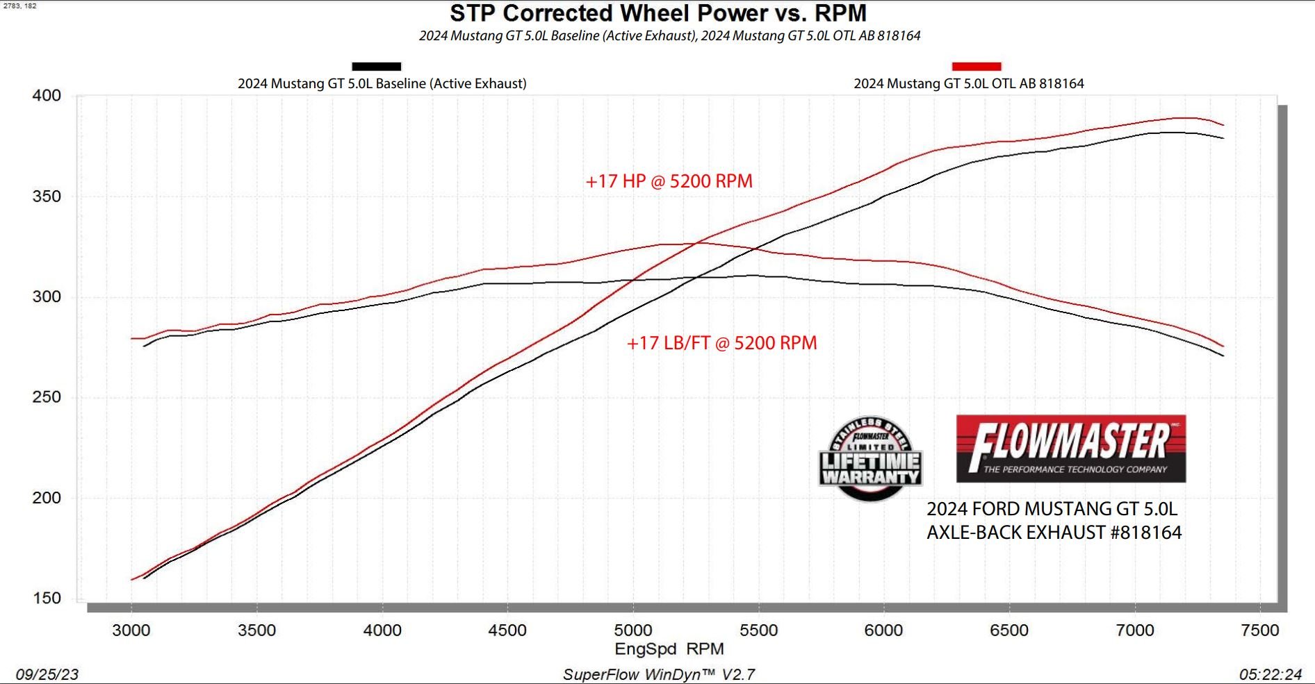 Better performance. This axle-back features smooth mandrel bends in the 3-inch exhaust tubing for improved exhaust flow. This results in max increases of up to 17hp and 17lb-ft of torque. Get more power to match the incredible sound with this axle back!