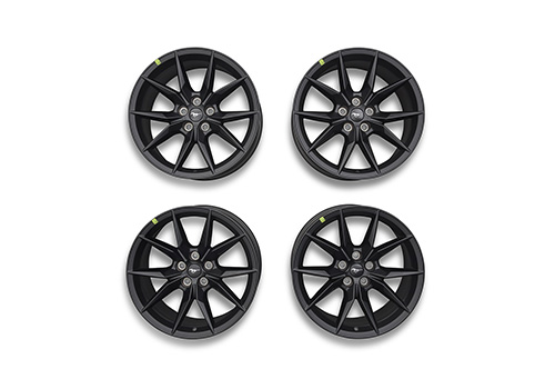 Give your 2015 and up S550 or S650 aggressive Dark Horse styling with this Ford Performance 19" Black Dark Horse Style staggered wheel package. This package includes two 19x9.5 front wheels and two 19x10 rear wheels, center caps, and TPMS sensors for a complete wheel upgrade. The split 5-spoke design seen on the S650 Dark Horse gives your vehicle a sleek and aggressive style and gives you great contrast if you have upgraded or colored brake calipers. The two front wheels feature a 40mm offset, while the rears have a 52.5mm offset to allow for wider tires that still fit under your wheel wells. Not a fan of black? These are also available in Sinister Bronze and Battleship Grey to match your vehicle's aesthetic.