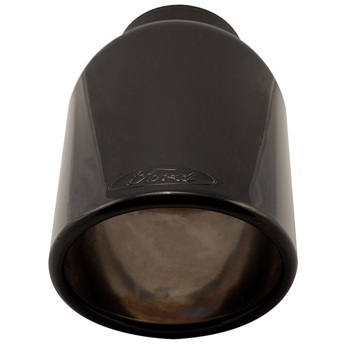 - Dual rear exit with 4.5" black chrome plated stainless exhaust tips with embossed Ford logo