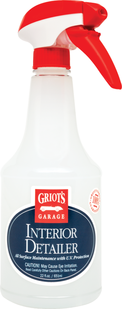 Versatile cleaner. Experience the convenience of a single product that can tackle all your interior cleaning needs. Griot's Garage Interior Detailer is specially formulated to effectively clean and protect surfaces such as leather, vinyl, plastic, and rubber, making it a versatile solution for maintaining your vehicle's interior.