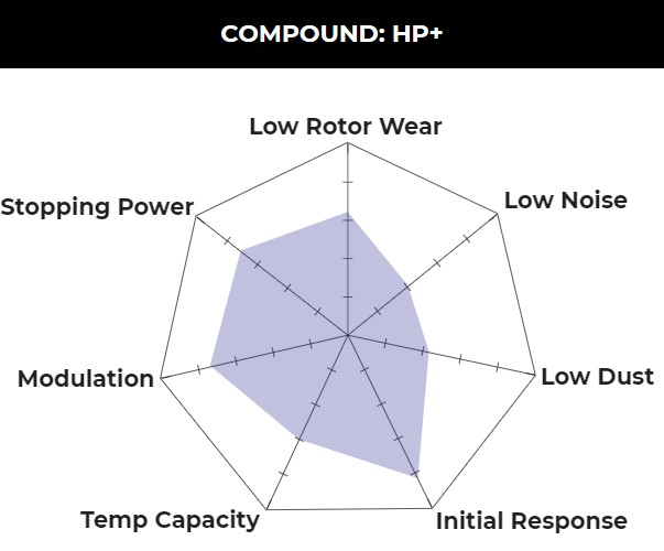 Rotor wear & dust. The HP Plus brake pad compound produces significant dust and accelerated rotor wear typical of competition type pads.