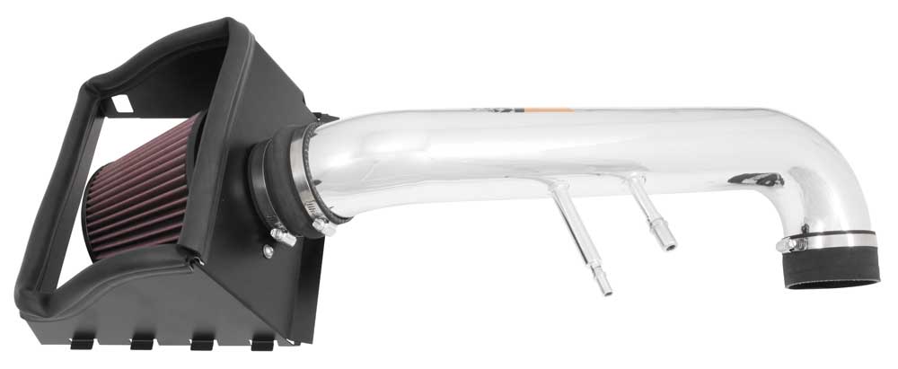 This K&N high-flow performance air intake system is a free-flowing, mandrel-bent aluminum tube air induction system designed to fit 5.0L F-150 models for up to 13.8 HP increase. The restrictive factory air filter and air intake housing on your vehicle are replaced by this K&N air intake system which is designed to dramatically reduce air flow restriction as it smoothes and straightens air flow. The improved airflow allows your engine to inhale a larger amount of air than it would from the stock air intake. More air means more usable power and acceleration throughout your engine's RPM range. The air intake comes with a chrome topped K&N high-flow air filter and a heat shield that installs onto the lower air box. Air is directed through the intake tube into the engine's throttle body for a guaranteed power gain. The oversized cone shaped air filter can be used for up to 100,000 miles before servicing is needed depending on driving conditions. This air intake is relatively easy to install usually in 90 minutes or less using existing factory mounting points. The tools needed are a screwdriver and an Allen wrench.