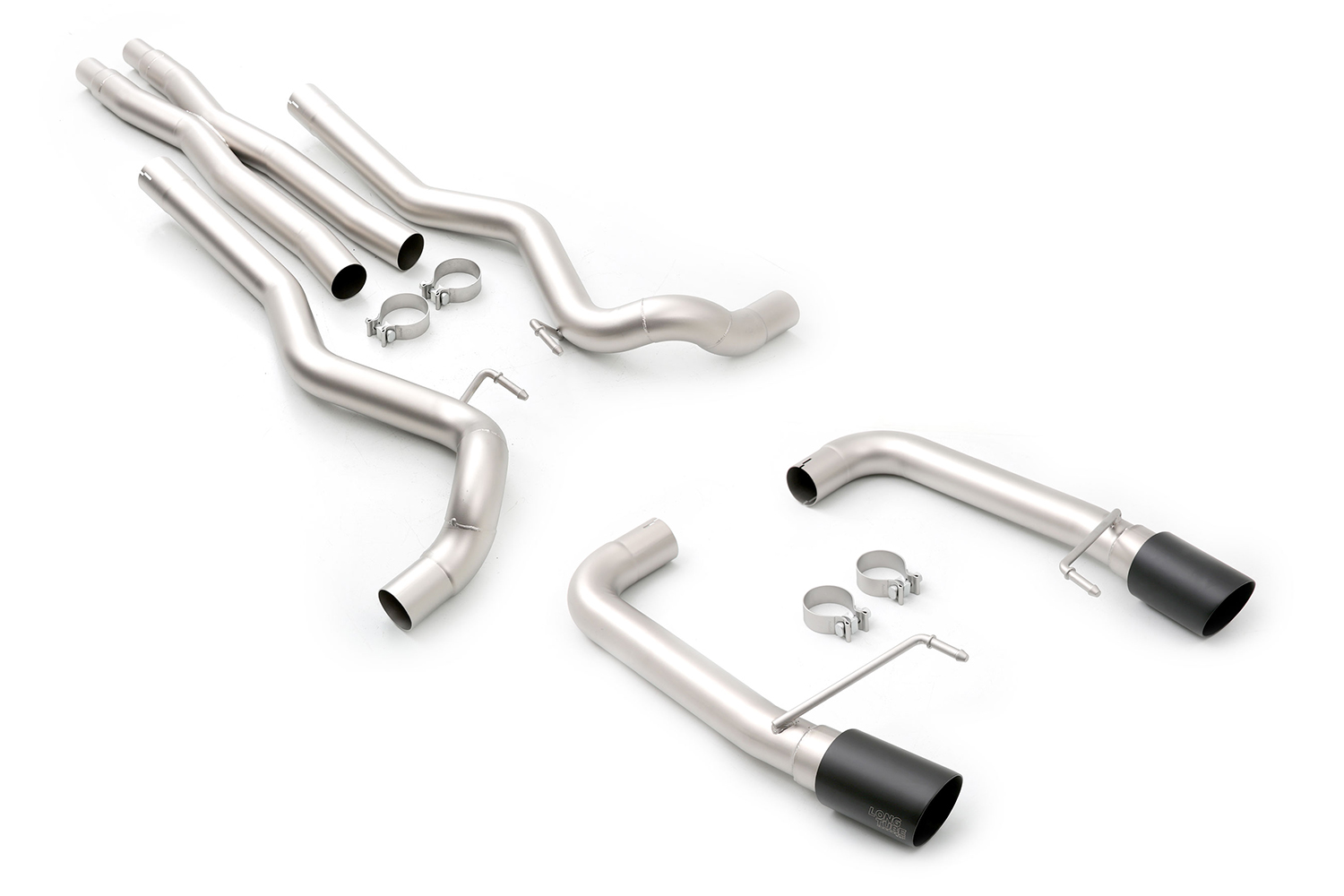 Make your presence known with the Mustang GT race cat-back from LTH. The race cat-back provides a free-flowing exhaust with an impressive sound. The x-pipe included in the kit helps to generate a smoother flow of the exhaust as well as give an outstanding sound to your S550. The black tips in this kit give a stealthy look to your exhaust and the titan finish on the rest of the exhaust adds a stunning matte finish that looks great on any Mustang.