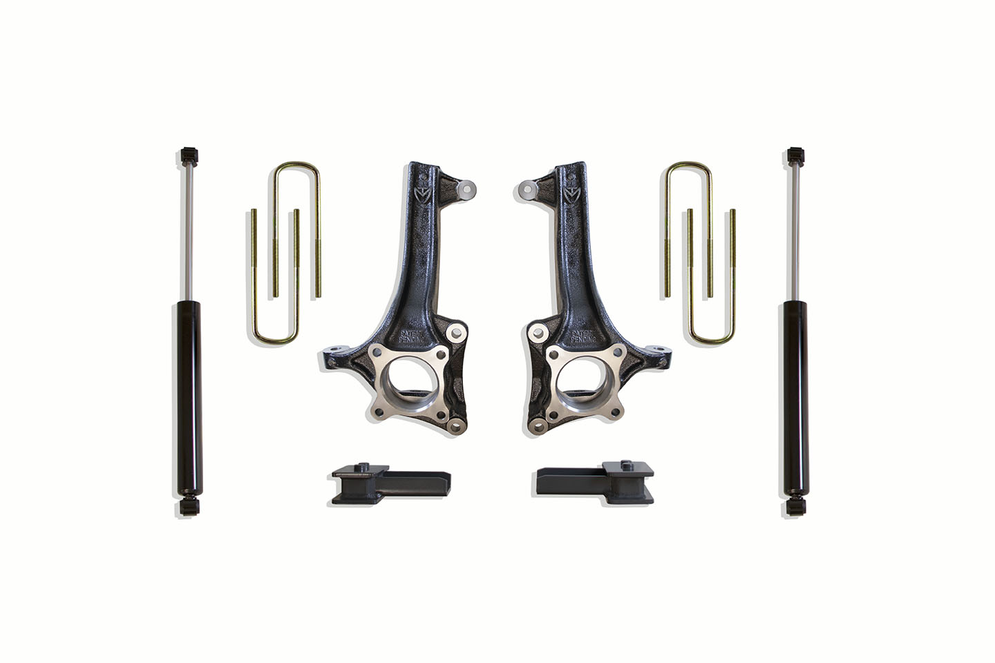 MaxTrac Suspension's 2" / 4" Lift Kit w/ MaxTrac Shocks fitting your 2021-2025 2WD F-150 is a high-quality, complete kit designed to raise your truck for an aggressive look . If you are looking to raise the factory ride height of your truck with OEM quality parts for an affordable price, this kit does the job. Included are 2" rear lift blocks, U-bolts, 4" lift spindles, and MaxTrac rear shocks to raise the overall ride height of your truck. All components are constructed from high-quality steel to match OEM specifications. MaxTrac includes all necessary hardware for installation and all parts are coated to prevent rust and wear.