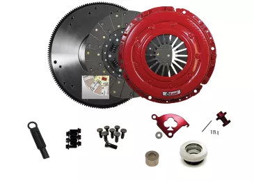 This kit features a dual-disc organic and ceramic setup for optimal drivability and performance, along with a billet steel flywheel to handle increased power. Also included are a pressure plate, throwout bearing, pilot bushing, pressure plate and crank bolts, and an alignment tool for a complete installation.