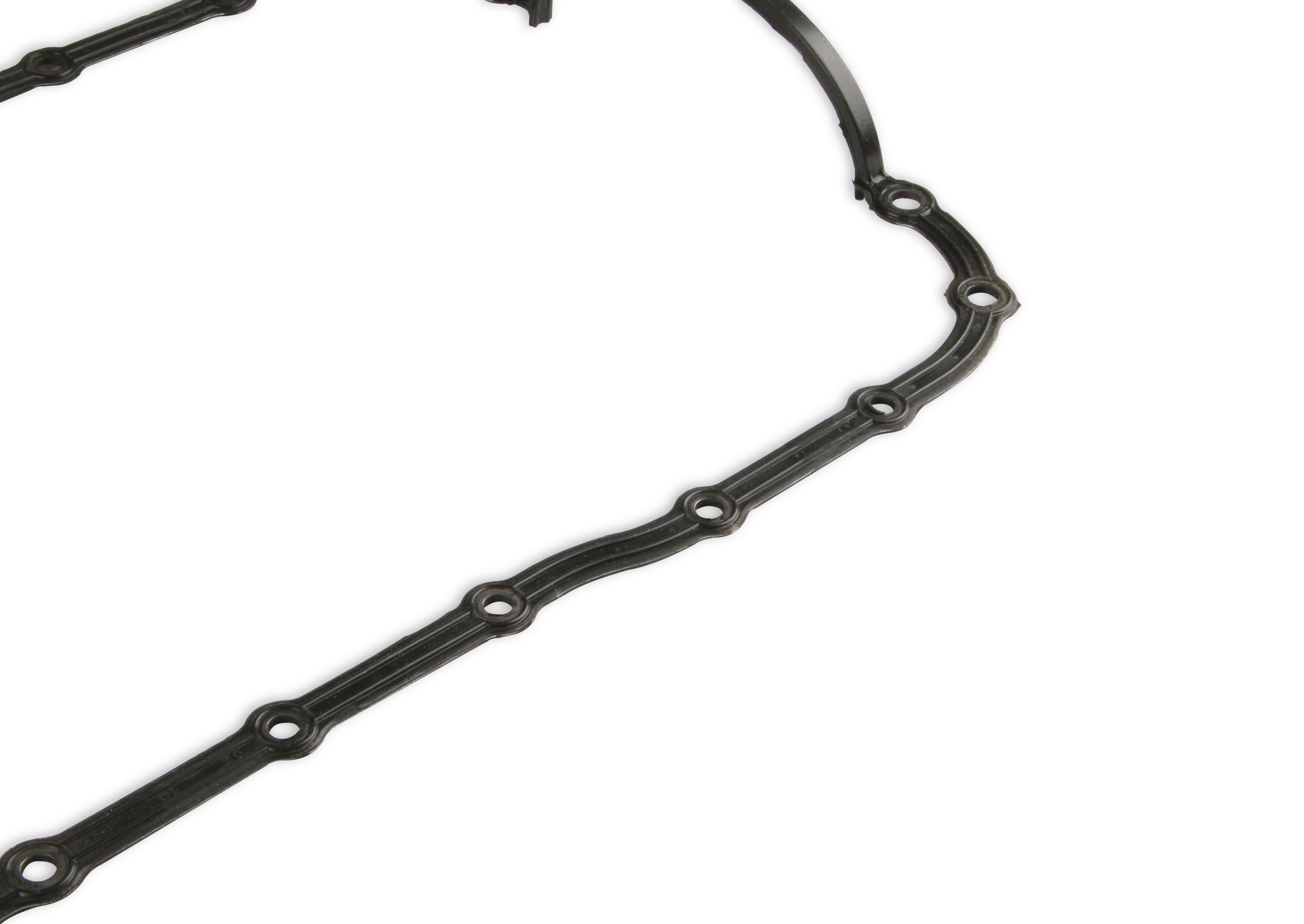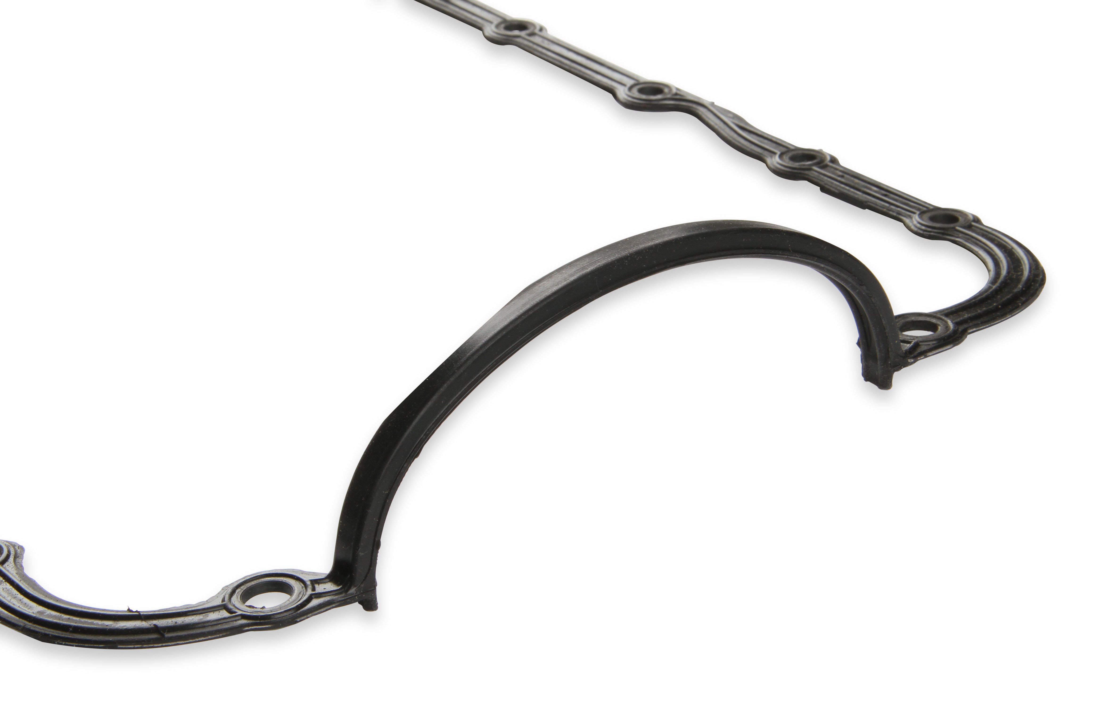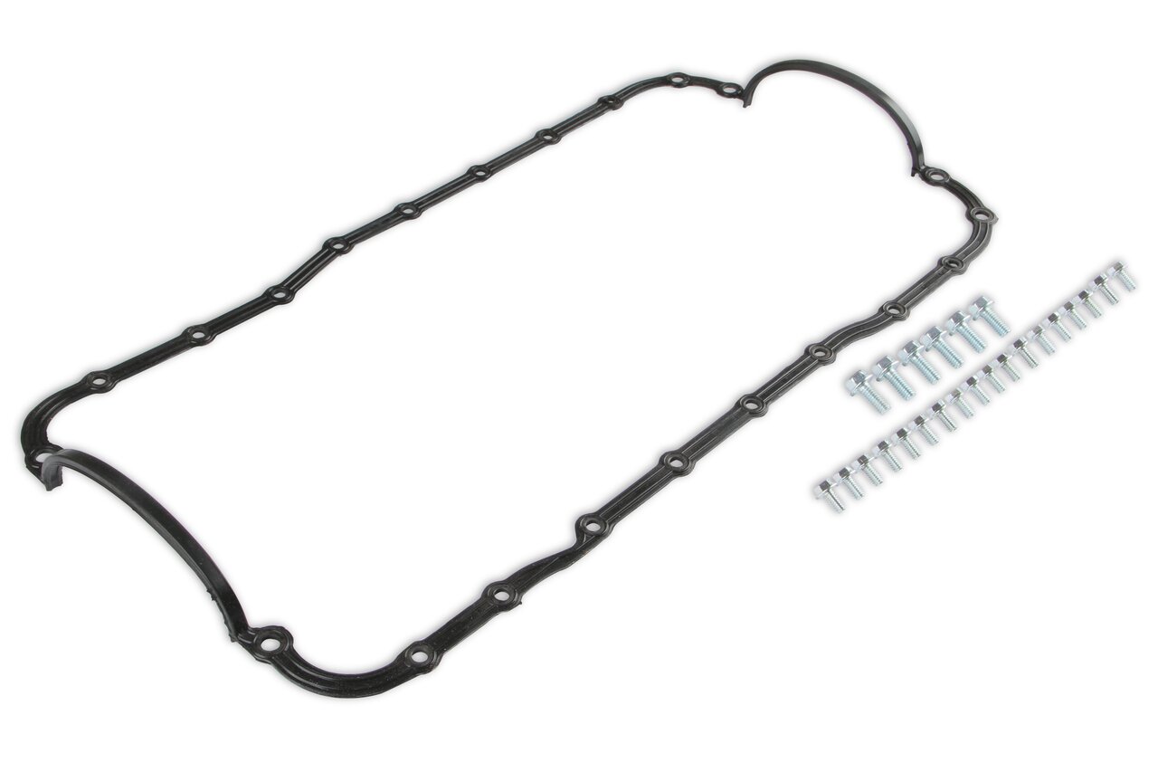 Eliminate annoying and hazardous oil leaks on your 1979-1995 Fox Body Mustang with Mr. Gasket's one-piece molded rubber oil pan gasket replacement kit. This kit includes a high quality molded rubber & steel core gasket and a new set of pan bolts for a complete and easy installation. The steel core provides rigidity and durability, preventing the gasket from being pushed out due to over-torquing and extreme pressures. The outer rubber molding allows this gasket to conform to your specific engine pan and block surface for a reliable seal, and the one-piece design furthers simplicity of install and oil leak prevention. This pan gasket is suitable for a variety of applications from street, to drag racing, and even laps around the track.