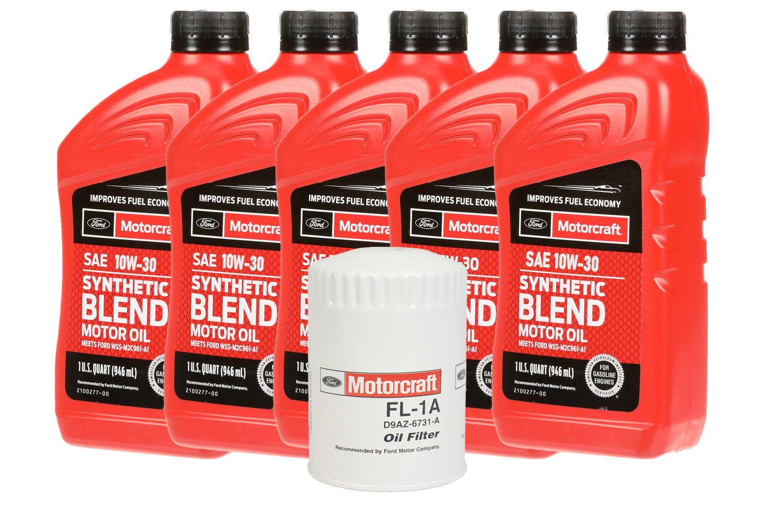 Give your Mustang the maintenance it deserves with Steeda's Motorcraft oil change kit! This kit includes everything needed to perform an oil change on your 1979-1995 5.0L Fox Body or SN95 Mustang GT . Included in this kit are 5 quarts of 10W30 Motorcraft Synthetic Blend engine oil and an OEM FL-1A oil filter.