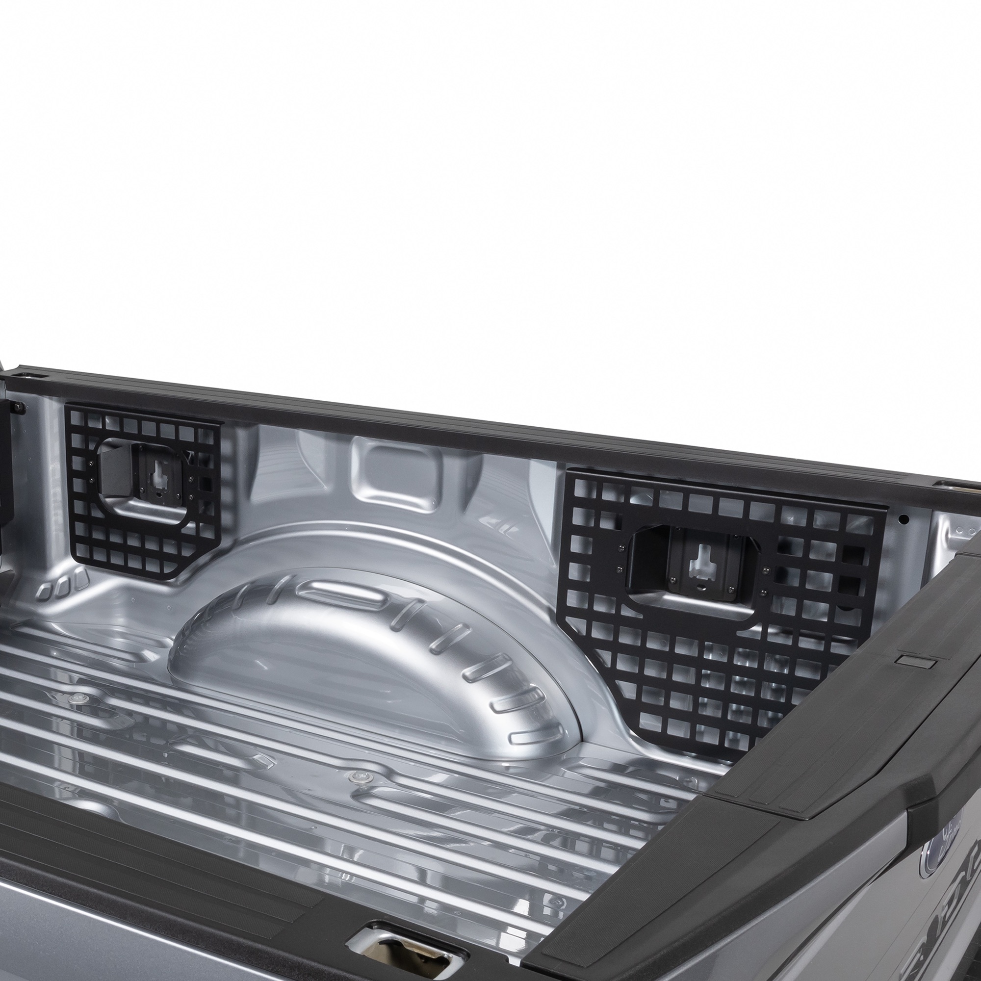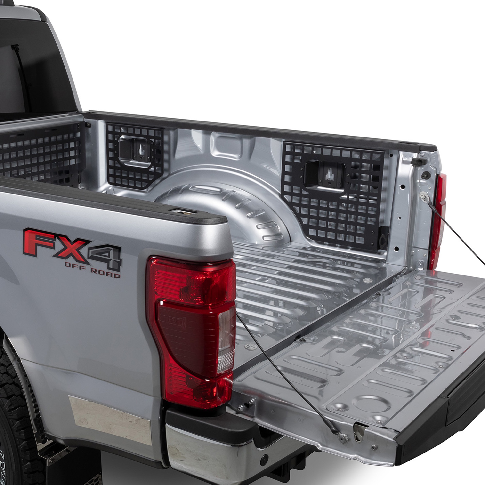 Outfit your 2017-2026 F-250 or F-350 Super Duty's 6.75ft bed with this MOLLE panel from Putco to unlock endless adventure, modular storage, or hauling capabilities. This MOLLE panel mounts directly to your Super Duty's bed on the passenger side and gives you an infinitely customizable modular storage system; perfect for storing commonly used tools, camping gear, recovery equipment, and other essentials. There's no end to the amount of aftermarket accessories that are compatible with the MOLLE system, including Putco's own MOLLE mounts, Milwaukee's Packout systems, and accessories from Quickfist, Kolpin, Hi-Lift, Maxtrax, and RotopaX. Putco manufactures their MOLLE panels right here in the USA from laser cut 20-gauge 6061 aluminum for a precision fit, and superior durability while remaining lightweight. Installation is super simple thanks to the 100% bolt-on design that requires no drilling or cutting. Their panels are also powder coated black for superior corrosion and wear & tear resistance, and are protected by Putco's NeveRust limited lifetime warranty, as well as their standard 3-year limited warranty.