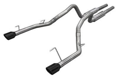 - 409 stainless mandrel bent muffler delete axle back with black 304 tips.