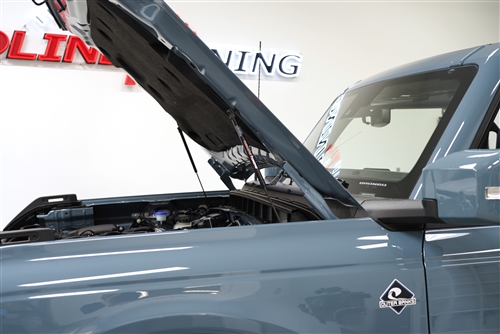 Redline Tuning's top level QuickLIFT PLUS Hood Strut System is a great upgrade for your 2021-2022 Bronco that allows you to remove your factory hood prop rod and raises your hood 8 inches higher when open.