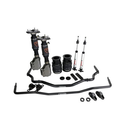 Ridetech's front system uses their HQ ShockWave bolts in uses the existing upper strut mount. The Handling Quality shocks used in the front and rear of this system are a key component to the superior ride quality of Ridetechs air suspension, because it allows the drive to adjust ride control. These shocks are impact forged aluminum, mono tube design with adjustable valving.