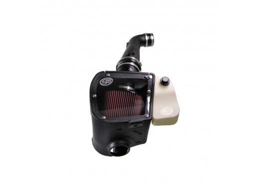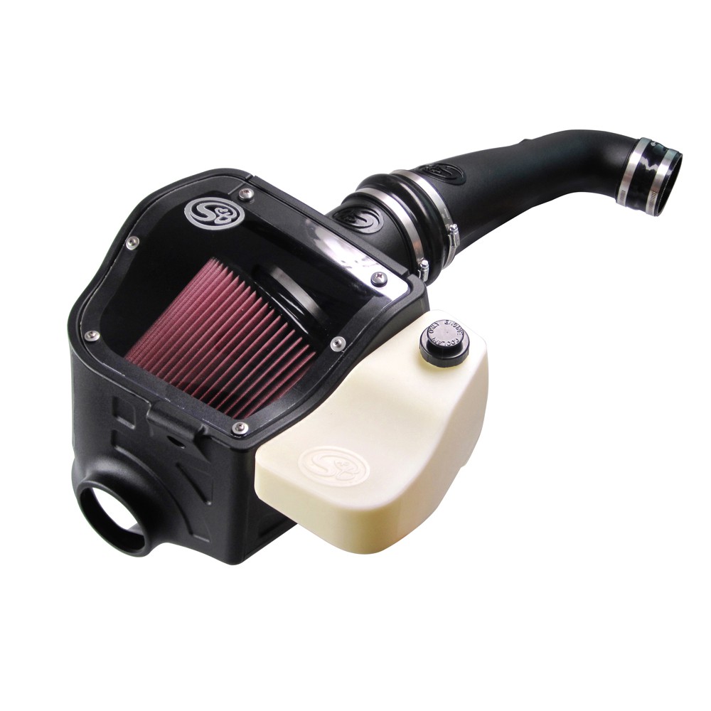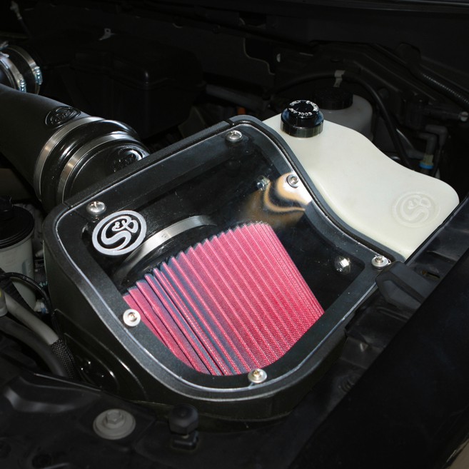 S&B Filters great looking F-150/Raptor cold air intake system fits like stock and performs to the highest standards. The 50 state legal S&B Cold Air Intake kit drops right in place of your stock intake system and doesn't require tuning. The cold air inlet scoop feeds cold air directly to the filter, eliminating power robbing engine heat. The intake tube is designed for smooth airflow and less restriction. The end result is cooler, less turbulent air in and more horse power and torque out. The filter itself features premium silicone rubber that can withstand temps up to 400F. The clear lid makes for easy filter inspection letting you know when it time to service your filter. The deep pleated 8 layer cotton media is oiled and can be washed, reoiled, and reused for the life of your truck.