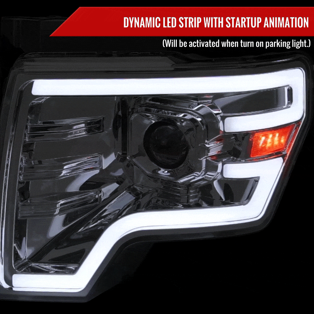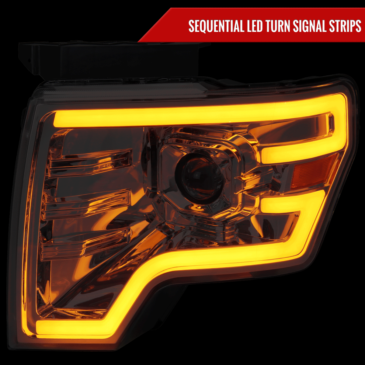 Spec-D Tuning's projector headlights with switchback sequential LED C-bars and chrome housing with clear lens bring a dynamic, modern upgrade to your F-150. Designed for 2009-2014 Ford F-150 models, these headlights enhance visibility and style.