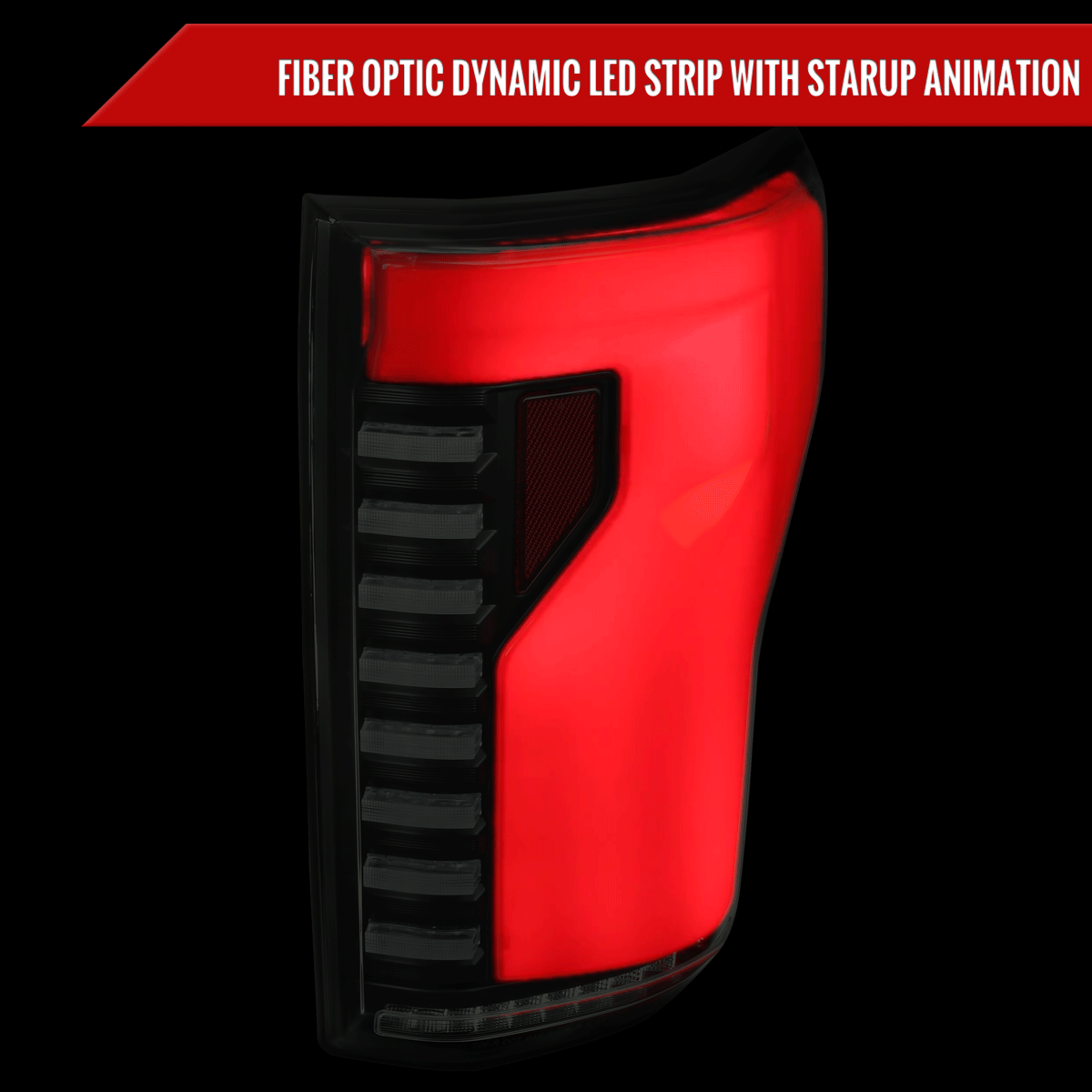 Spec-D Tuning's LED Red Bar Tail Lights with black housing and smoked lens, featuring sequential turn signals, add a bold, custom edge to your F-150. Designed for 2018-2020 Ford F-150 models, these tail lights enhance visibility and style.