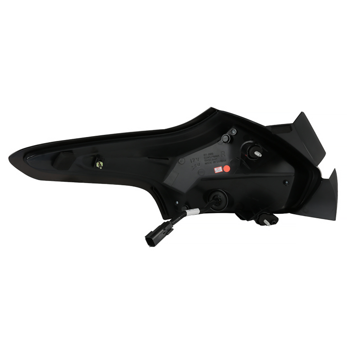 Durable construction. The matte black housing and clear lens are engineered for durability, ensuring reliable performance and a stealthy appearance.