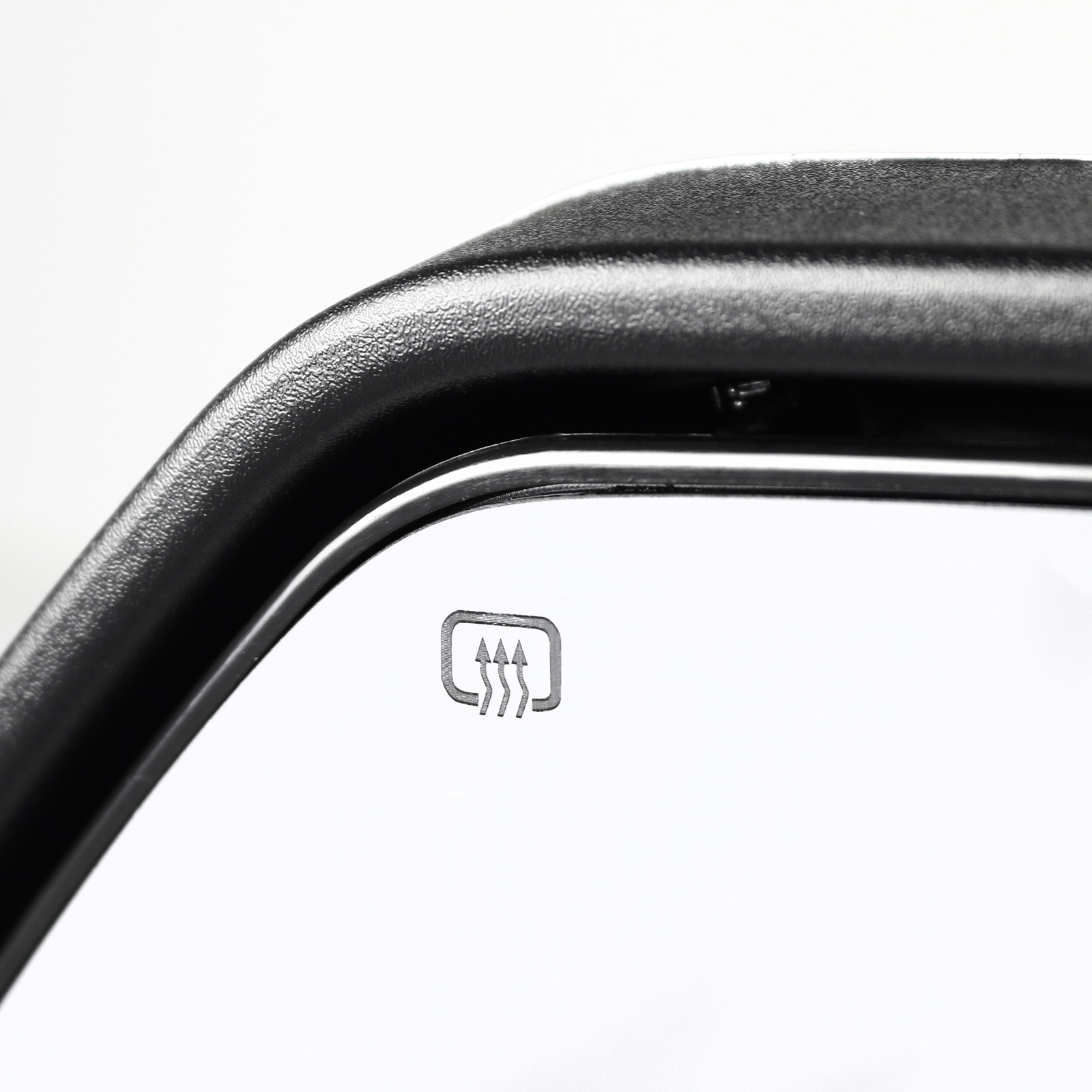Top-tier towing visibility. These power-adjustable, heated tow mirrors feature clear LED turn signals and clearance lights. They enhance safety and style for towing.