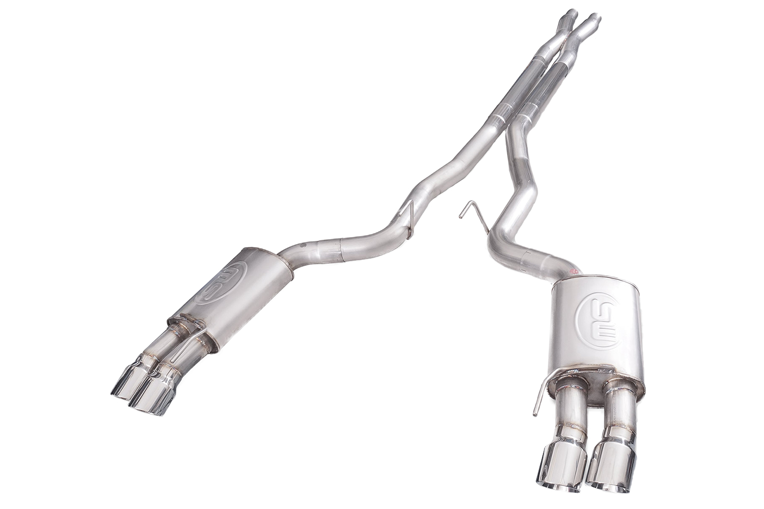 Clean look. The polished slash-cut quad exhaust tips give the exhaust system and the S550 rear valance a great look. This is the perfect option for the Mustang owner that wants to keep a classic and clean appearance.