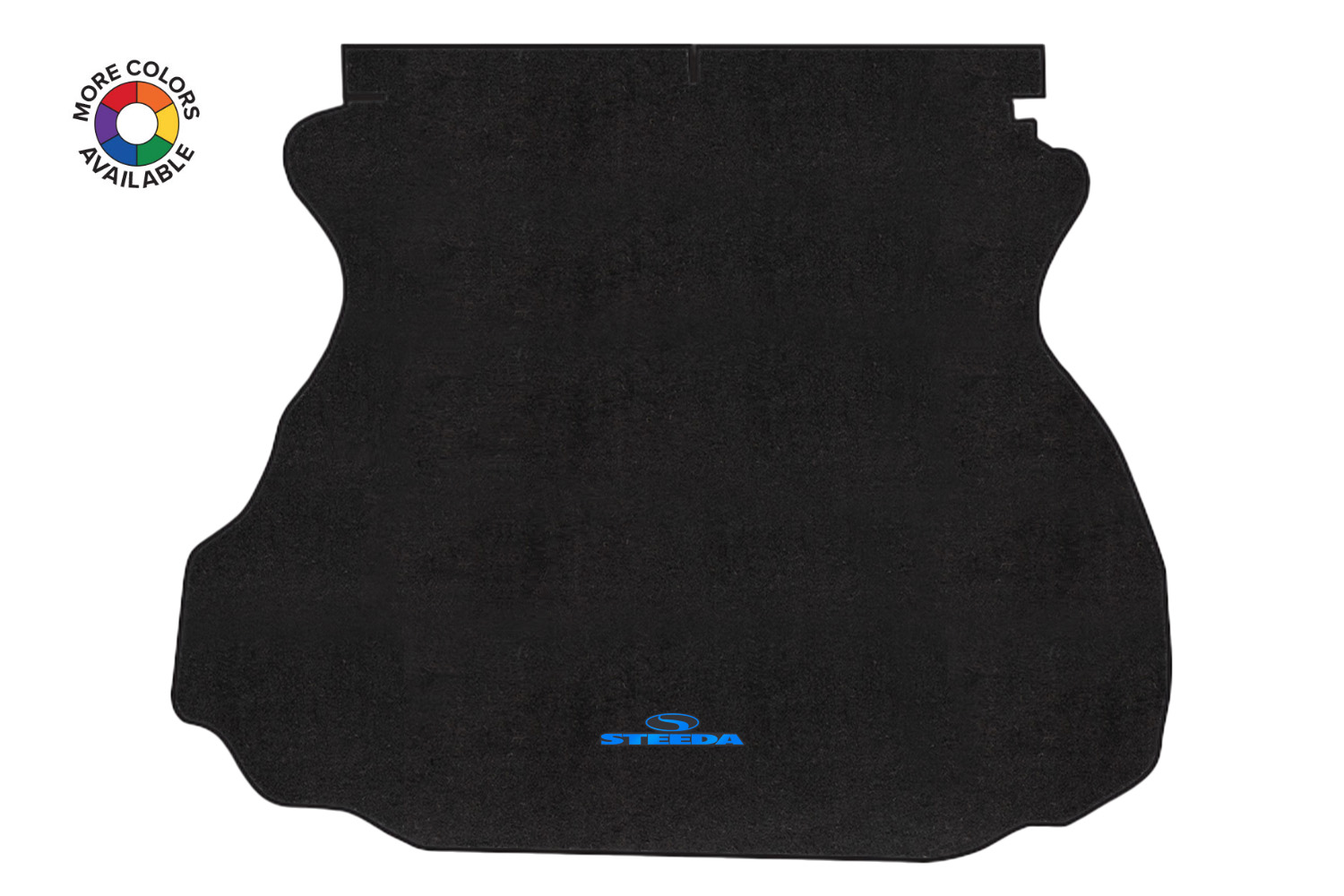 Enhance the look and protect your 1994-2004 SN95 or New Edge Mustang's rear cargo area with this official Steeda embroidered trunk mat. This trunk mat is made right here in the USA using black cutpile carpet with an embroidered Steeda logo in the color of your choice. This mat is a perfect pairing for our embroidered front floor mats, and the logo's thread color can be perfectly matched to complete your Mustang's interior.