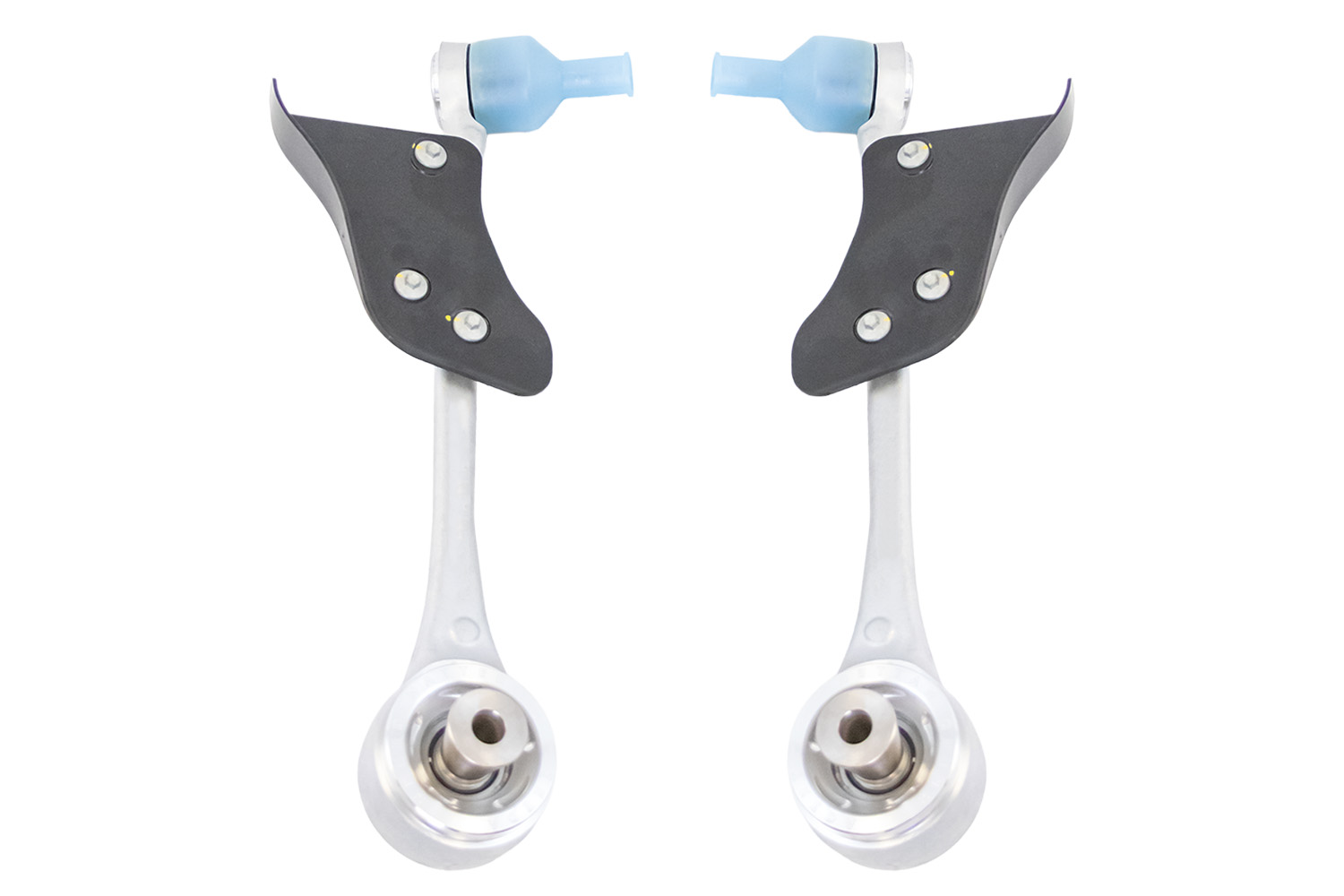 Steeda's S650 Mustang Tension Links, are a must upgrade for all lowered 2015-2026+ Mustangs. These pieces begin as a genuine Ford part that is then upgraded with Steeda components, with one major benefit: increased steering response. The Tension Links have air scoops built onto them for added brake cooling and our Steeda Mustang Front Control Arm Spherical Bearing Kit , which eliminates bushing deflection and reduces alignment changes in high-performance driving.