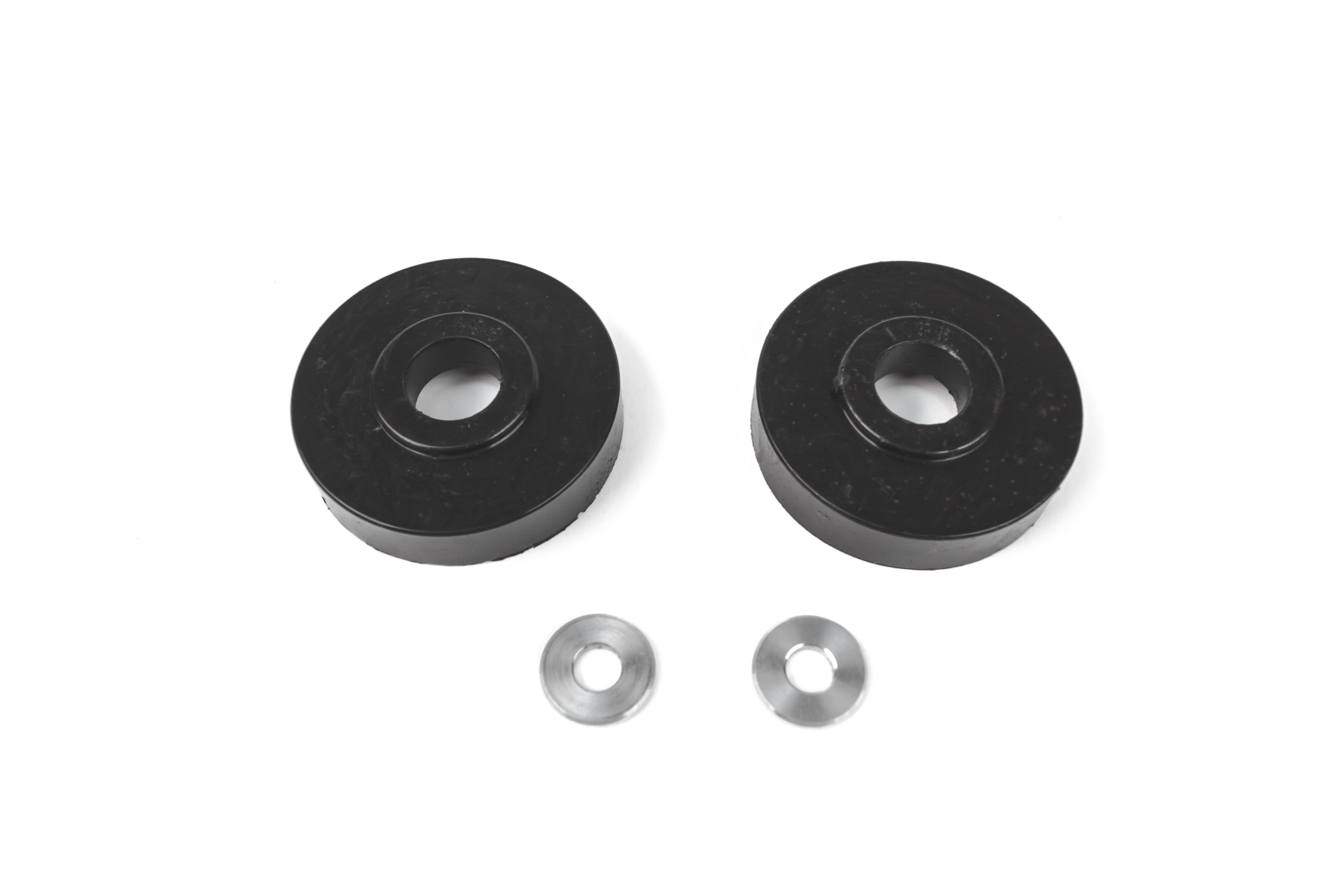Easier installation. This kit includes a dual threaded inner sleeve that makes installation easier. No need to try to deal with one long bolt and try to align everything from under the car. The threaded sleeve makes it easy to install the kit with one bolt from below and one from above.