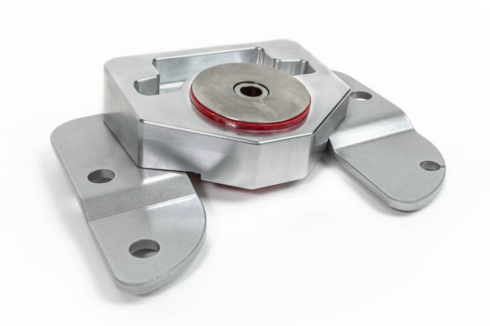 Our mount uses a CNC machined billet aluminum bushing mount which bolts to a 1/4" CNC stamped steel plate making it far stronger than the factory piece. This motor mount will help improve launching by eliminating any deflection which could cause front wheel hop and comes with a limited lifetime warranty.