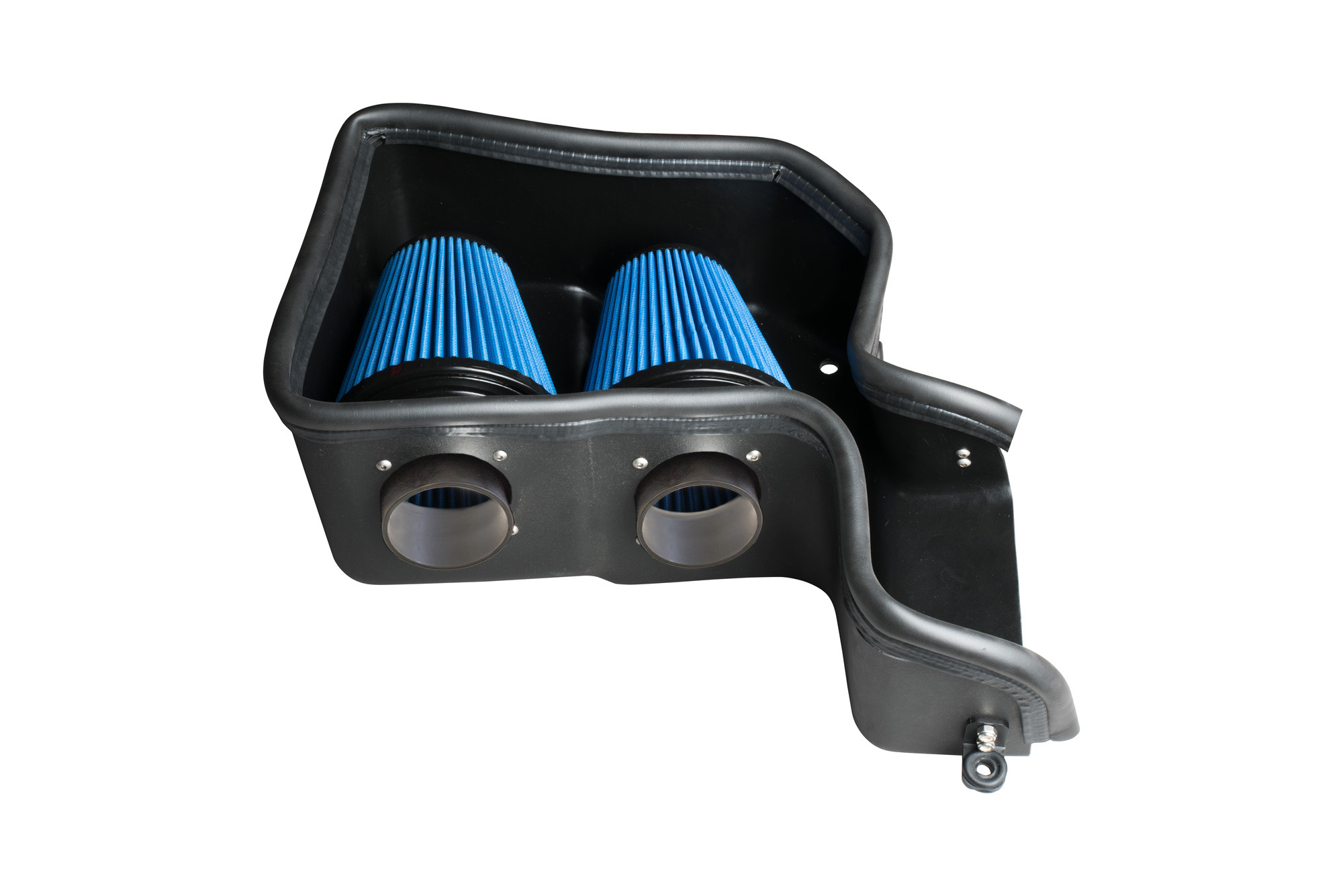 When Ford released the awesome new 2.7l Twin Turbo EcoBoost V6 Fusion Sport, the team at Steeda couldn't wait to get their hands on one! While it's a nice improvement having some extra cubic inches and an additional turbo, the team at Steeda knew we could squeak some more horsepower out of it. Introducing our hot new Twin Turbo Fusion Cold Air kit from Steeda! Featuring an in-house CAD-designed custom Roto-molded air box that seals directly to the hood liner and utilizes 2 high-flow velocity stacks and the factory cold air feeds. It keeps the hot air out while keeping both air filters cool. That's right, we incorporated 2 high-flow, million-mile warranty air filters into this kit. Both feature Steeda's exclusive velocity stacks to help this twin-turbo beast breathe as freely as possible. What makes this kit even better is the fact that it does not require any ECM tuning, making it an easy direct bolt-on!! In addition, under steady-state driving conditions, an increase in gas mileage should be noticed.