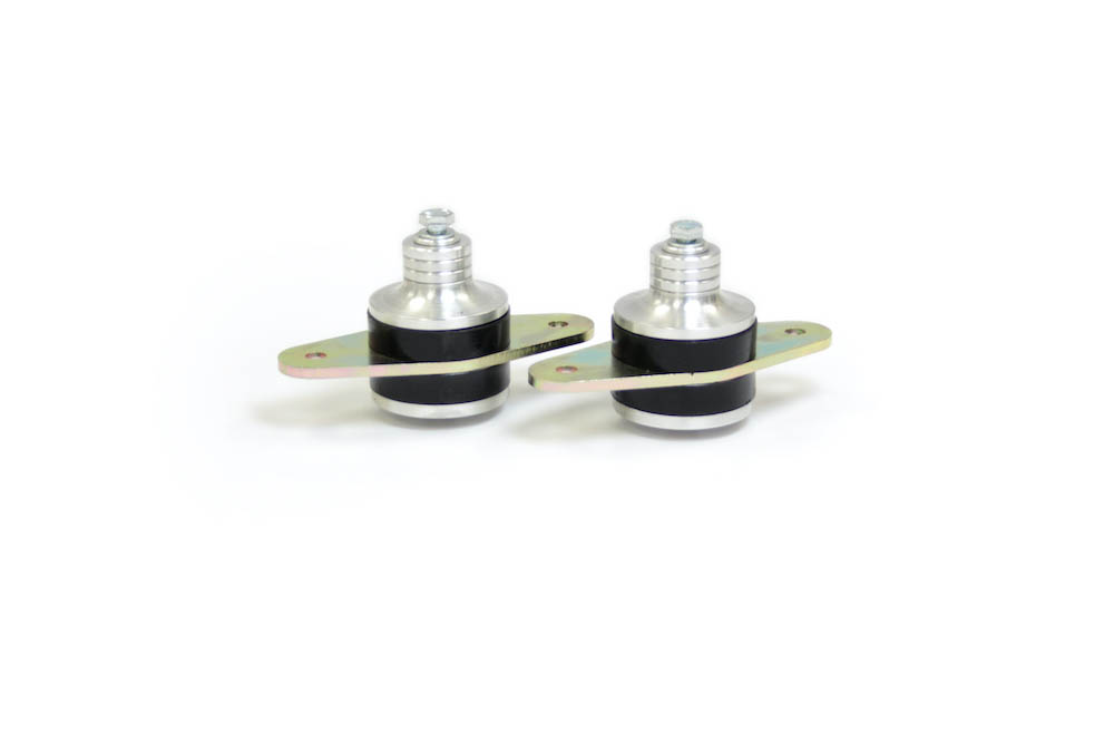 In addition to being much more durable than the factory engine mounts, our motor mounts are adjustable from factory height up to 3/4 of an inch lower to create clearance for superchargers and strut tower braces.