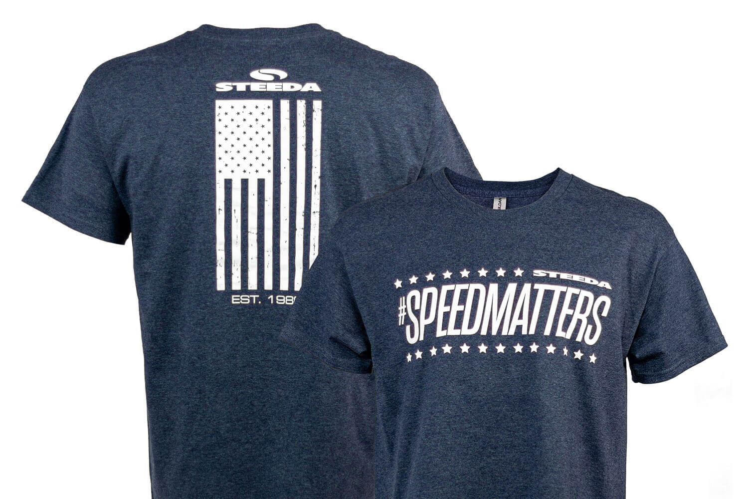 Our new Stars & Stripes Speed Matters T-shirt has arrived. This stylish shirt looks good and feels great. Made from 100% premium cotton with double-needle stitching. Buy yours today!!!