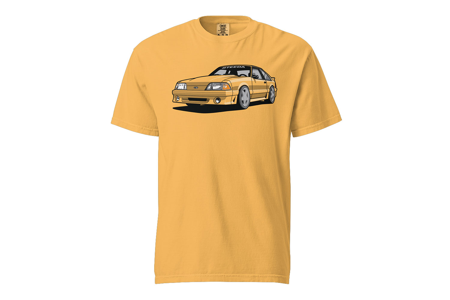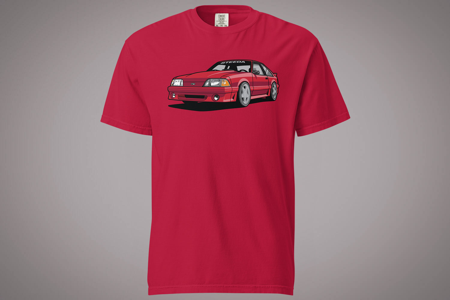 Bold Graphic Design. The high-quality print on the chest features a sleek Fox Body graphic that will get any automotive enthusiast's attention. The Steeda banner and badge on the Mustang shows that you settle for nothing but the best because Speed Matters!